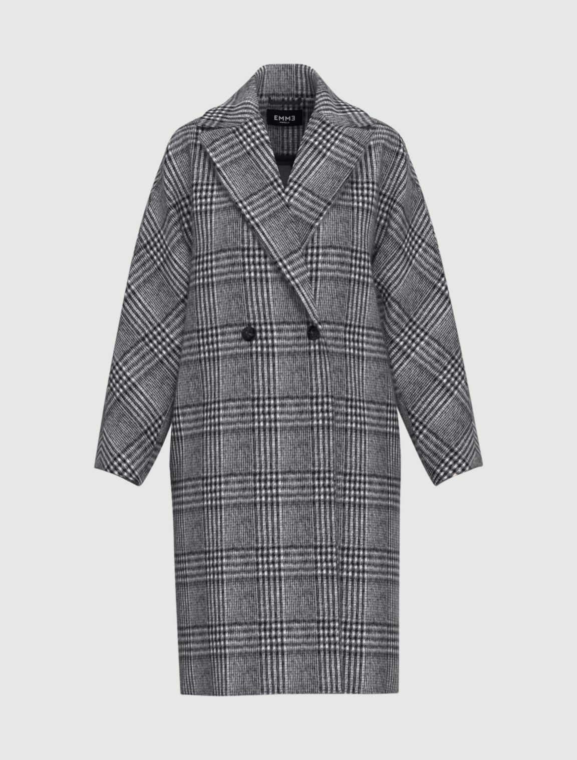 Abrigo cruzado de lana acabado pelito príncipe de gales.