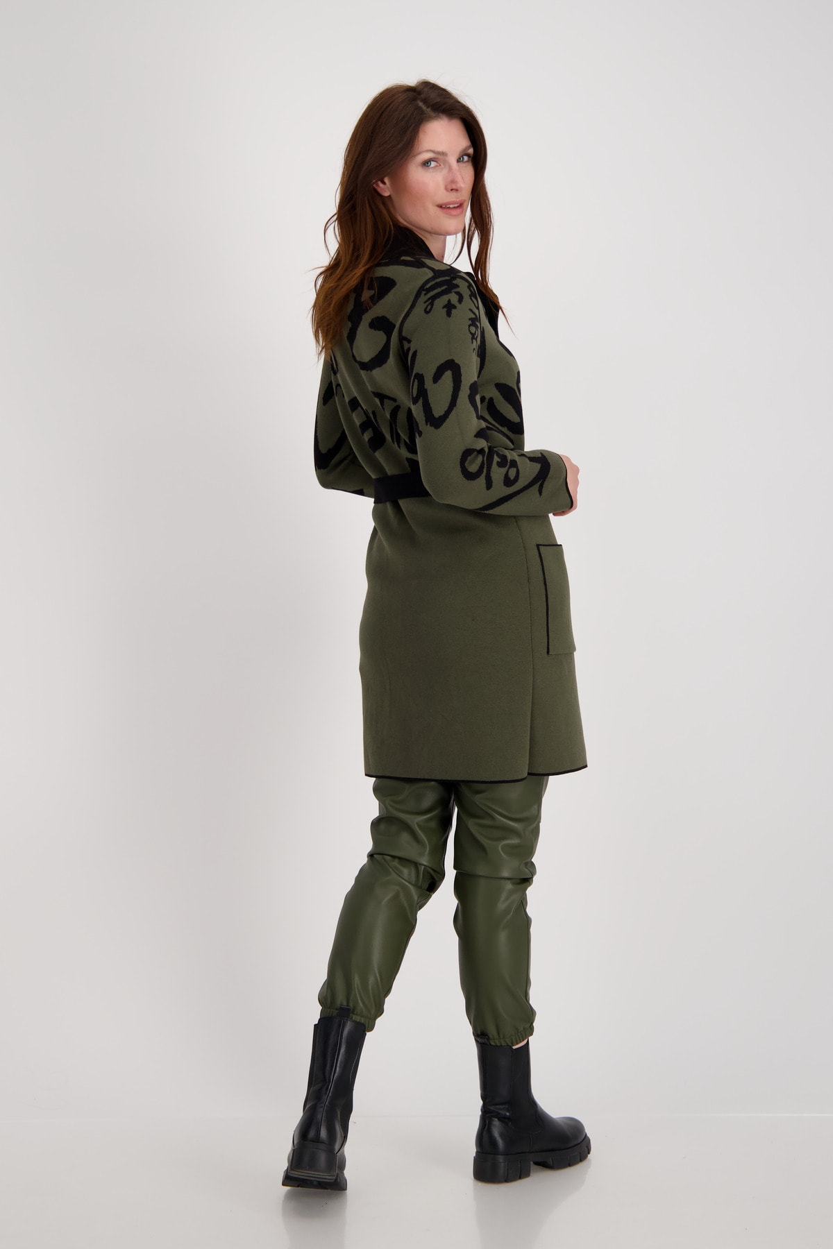 El abrigo 2 en 1 con función reversible de monari convence con dos looks. El modelo para mujer realza tu silueta con un cinturón de tejido femenino con hebillas metálicas en la cintura y ofrece la máxima comodidad gracias a la elaboración realizada con algodón de alta calidad mezclado con poliamida. El jacquard de letras en ambos lados armoniza a la perfección con el resto de color liso.El moderno cuello alzado, la tapeta con botones de presión cubiertos con un amplio frente y la forma recta y alargada aportan un toque moderno. Esperamos un abrigo con dos lados.