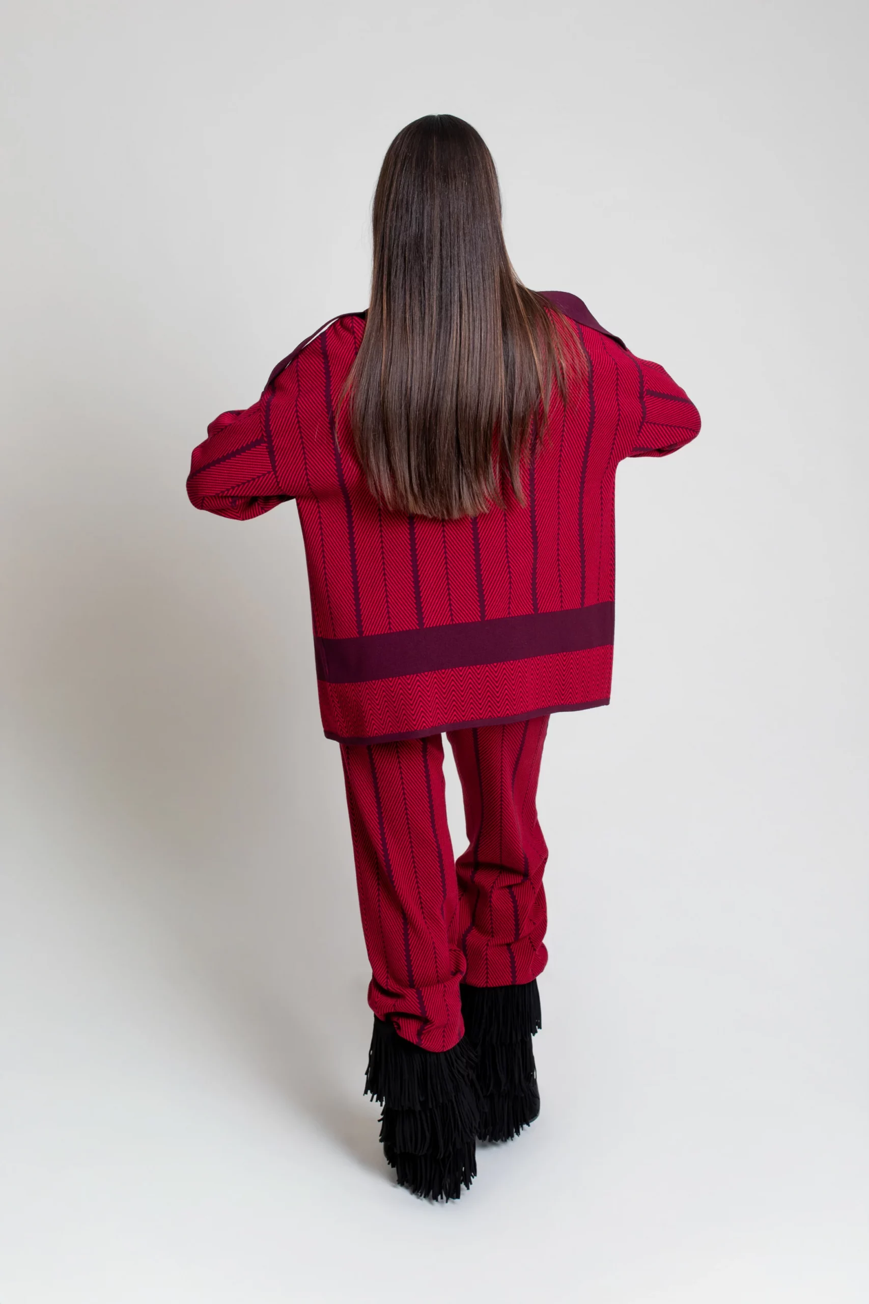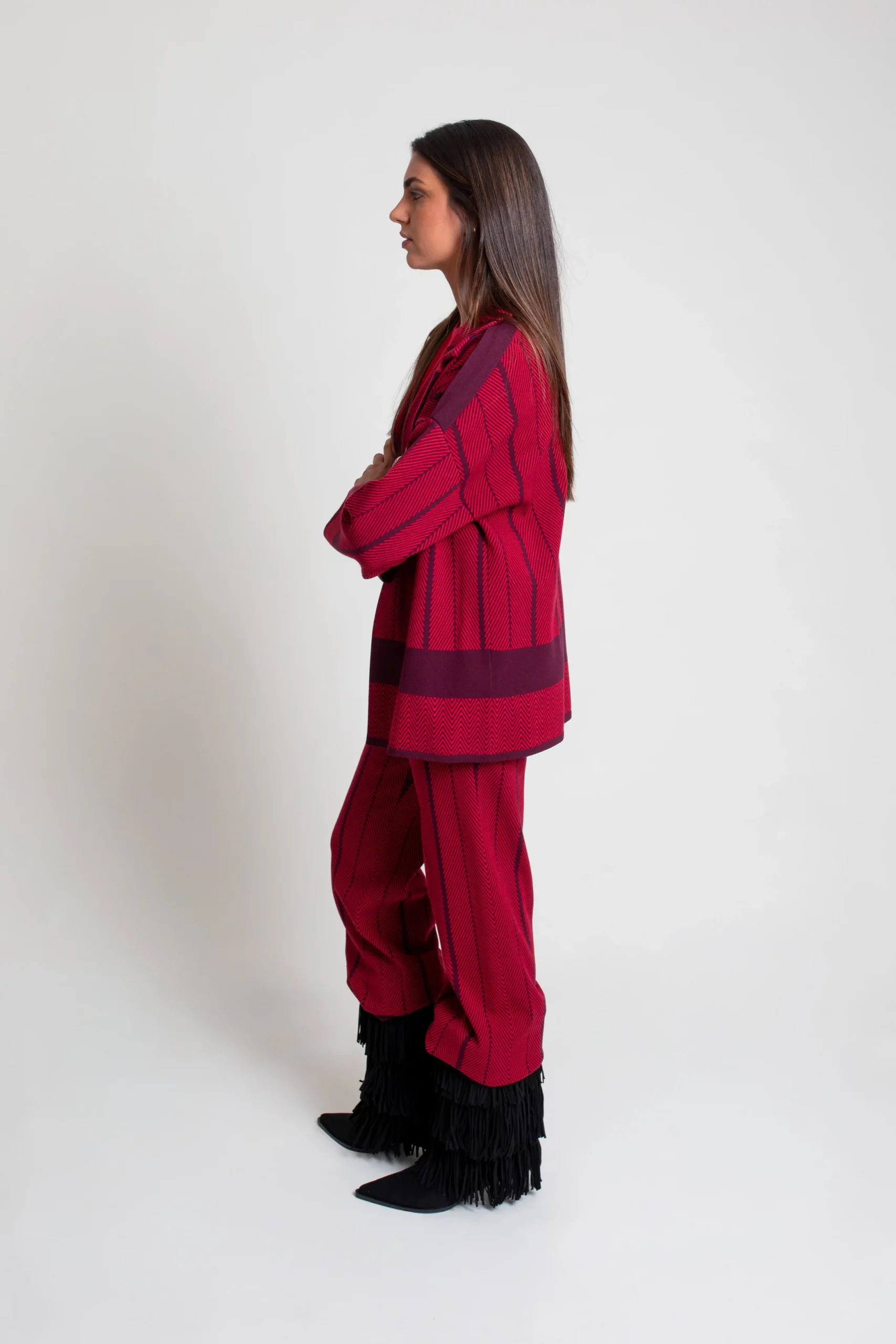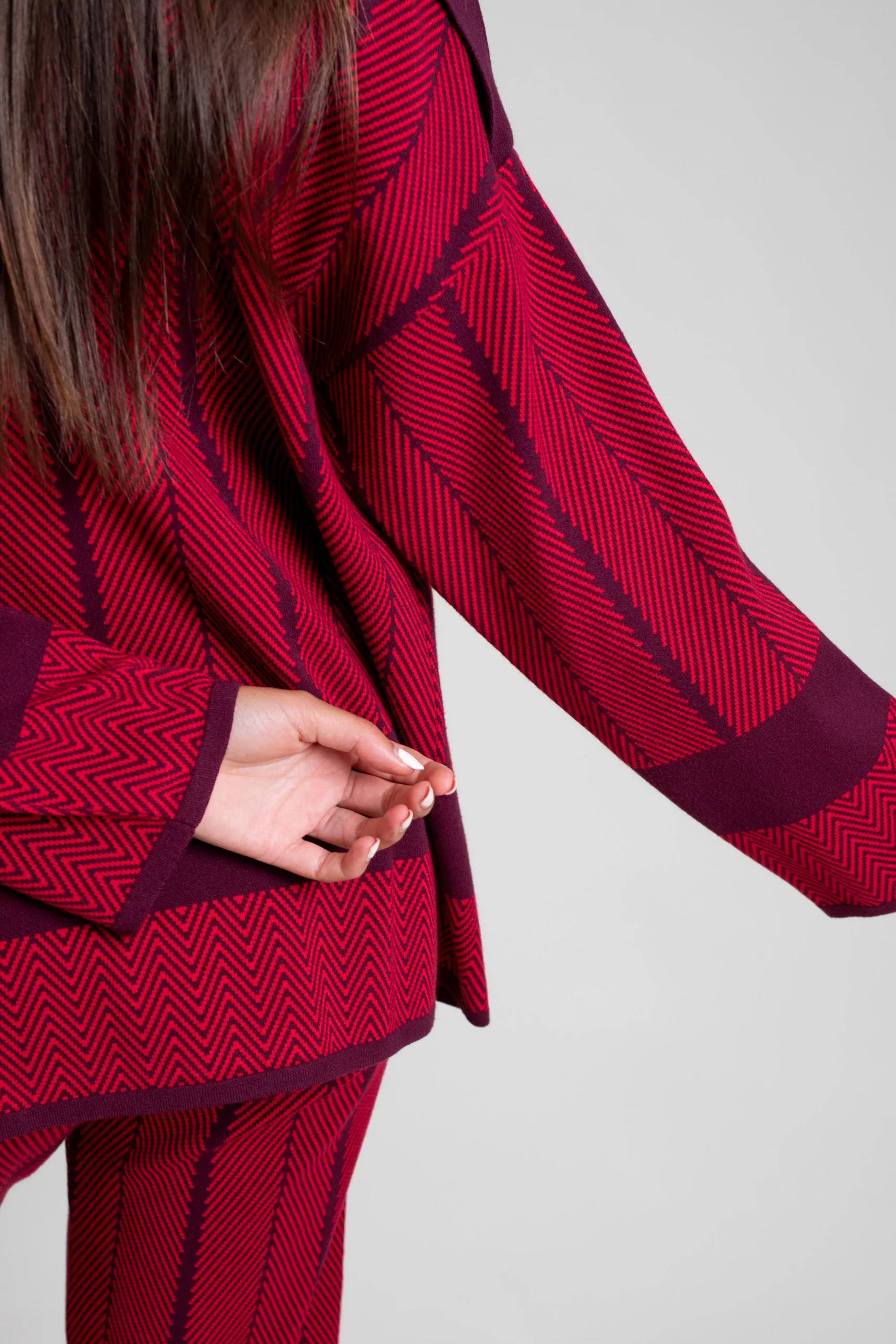 Chaquetona de punto tricot con intarsia bicolor. Modelo de corte oversize con escote solapa y manga larga caída