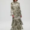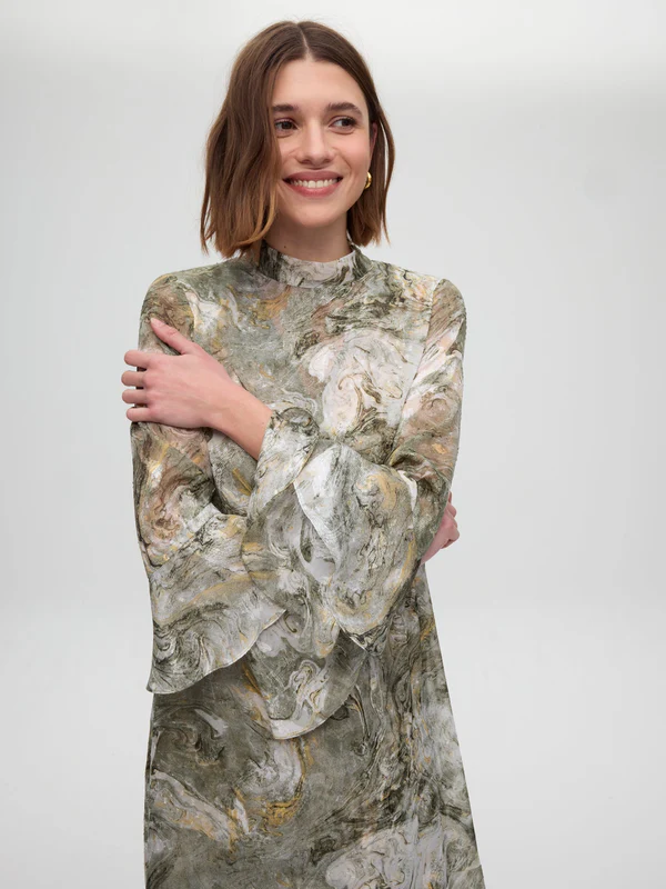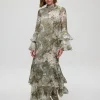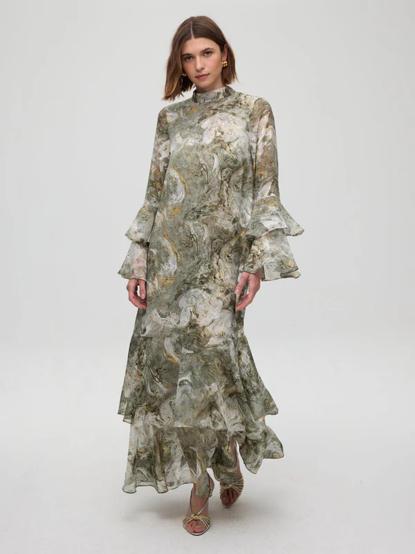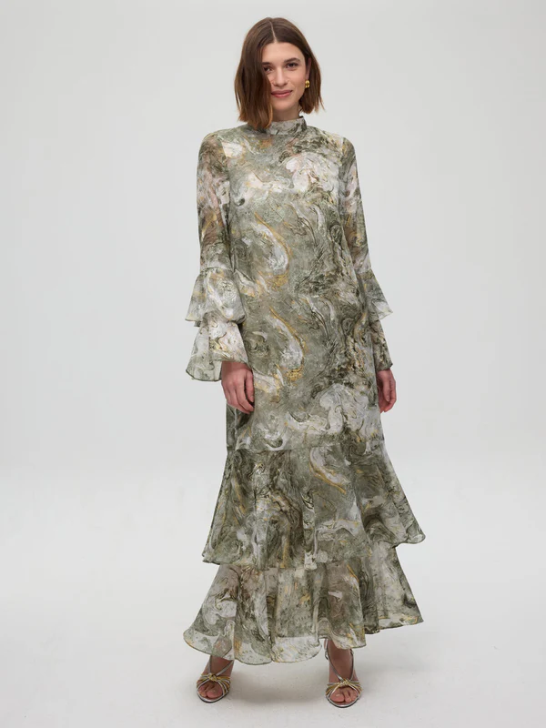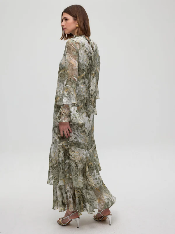 ATHOS GREEN – Vestido + Capa larga estampado verde
