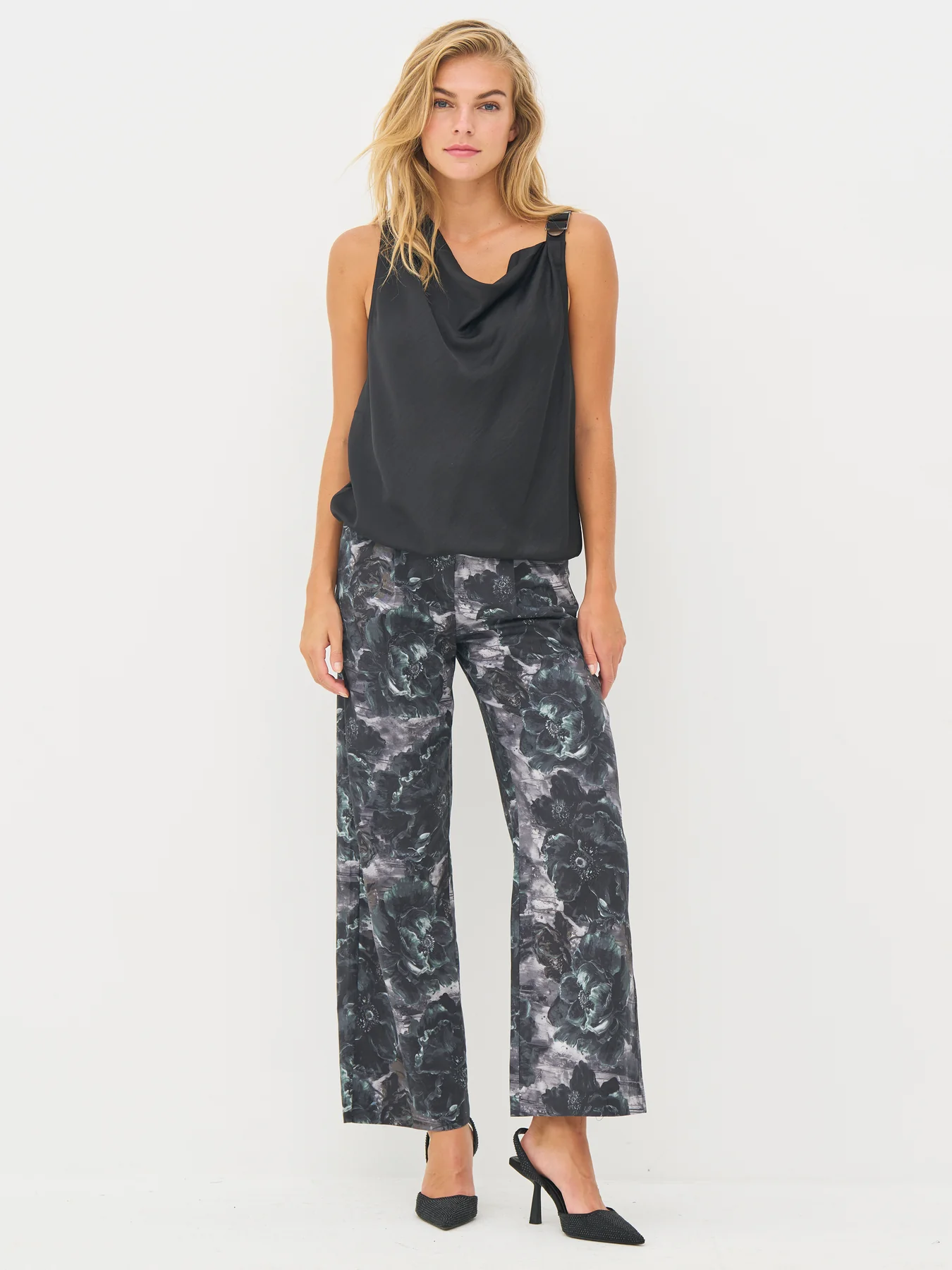 Este top aporta un toque versátil de elegancia, combinado con detalles sin rematar como la hebilla y su moderna expresión asimétrica.