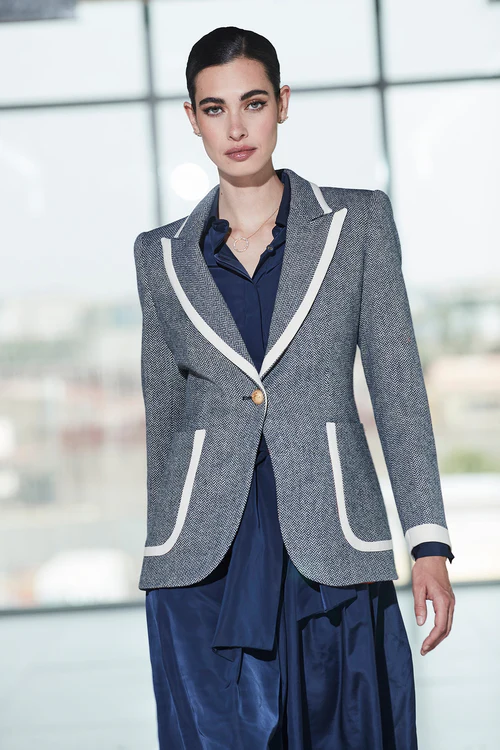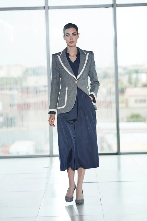 La BLAZER GRAFITO LAURENT ESPIGA 01 es la esencia de la sastrería contemporánea, una pieza que redefine la elegancia con una estructura impecable y una apariencia sofisticada. Confeccionada con lana e hilos de torsión de alta calidad, esta blazer lana gris presenta un distinguido patrón de espiga en un profundo tono grafito. Su diseño se realza con un cuello solapa y bolsillos de plastón ribeteados en un contraste crudo, que añaden un toque moderno y limpio a su corte clásico. Los botones dorados en los puños y al frente, elaborados en polímero de alta calidad con brillo y nuestro logo personalizado, son un testimonio de exclusividad. El forro interior naranja vibrante, que revela discretamente el logo de la firma, es un sello de lujo oculto. Esta blazer lana Laurent Espiga 01 es más que una prenda; es una declaración que infunde una presencia magnética y una confianza inquebrantable, realzando la figura con una sofisticación atemporal.