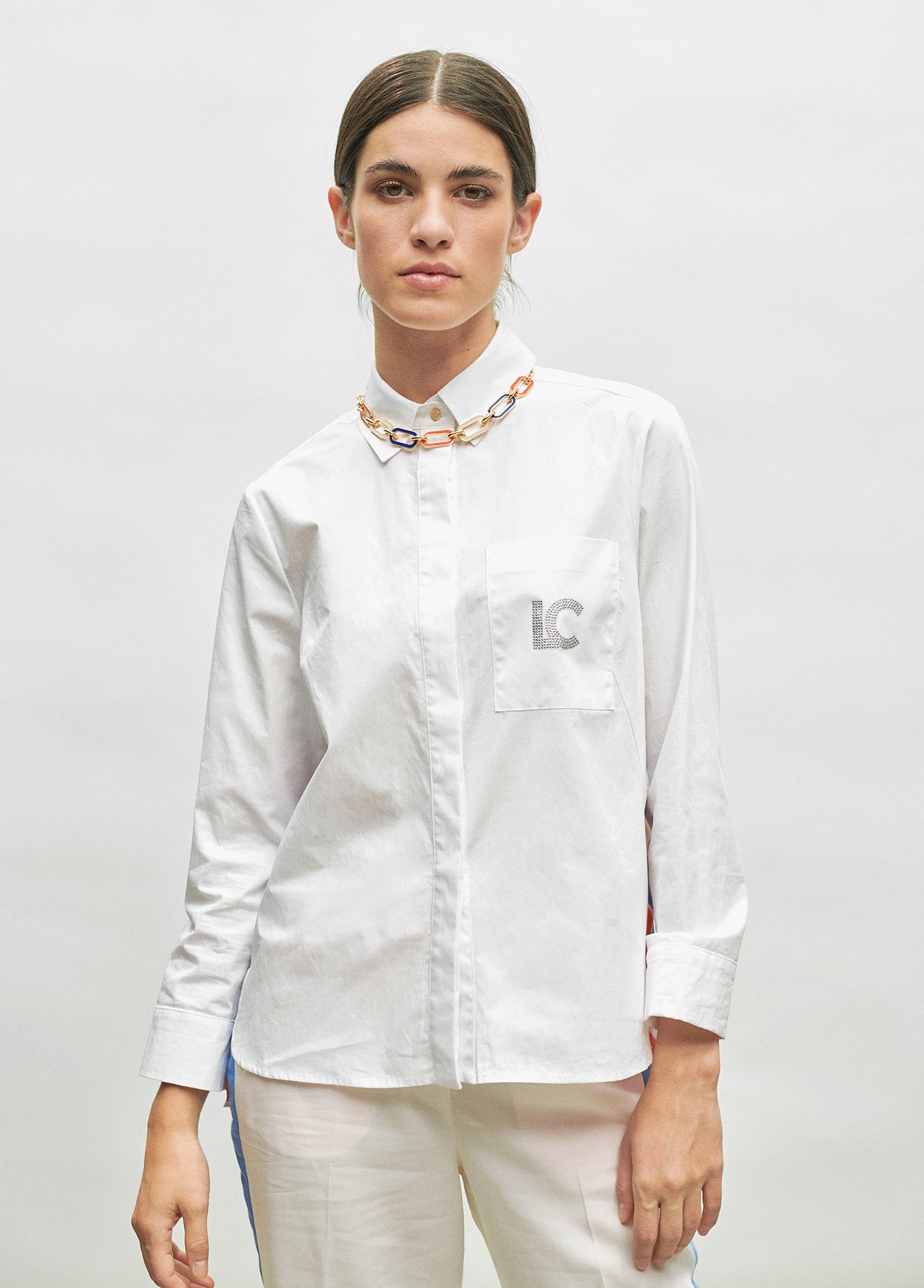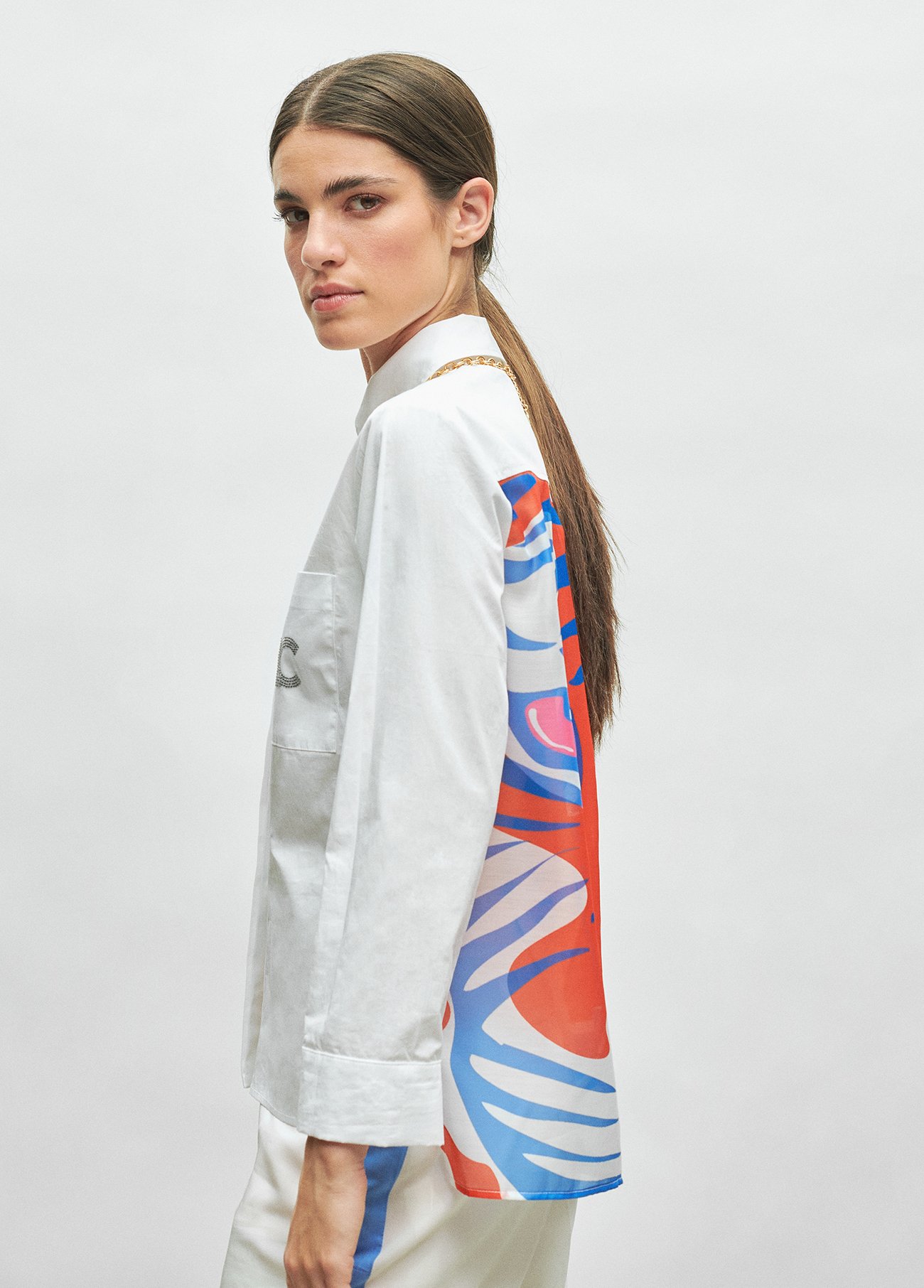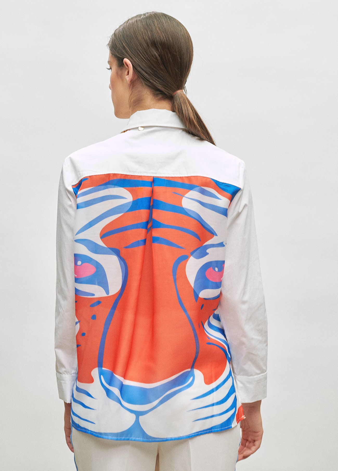 Camisa con cuello y puños camiseros y con tigre multicolor estampado en espalda.