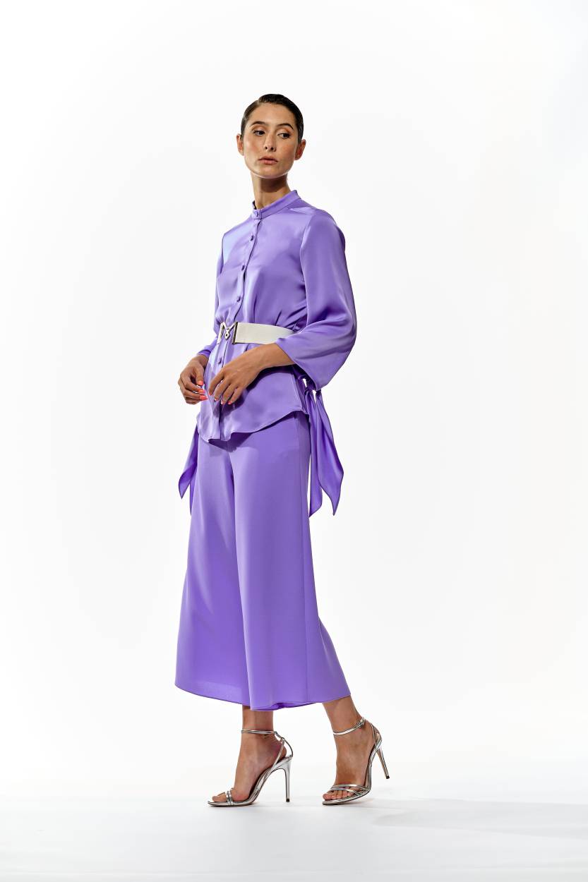 Conjunto Pantalón raso palazzo corto & Camisa cuello mao manga larga puño atado