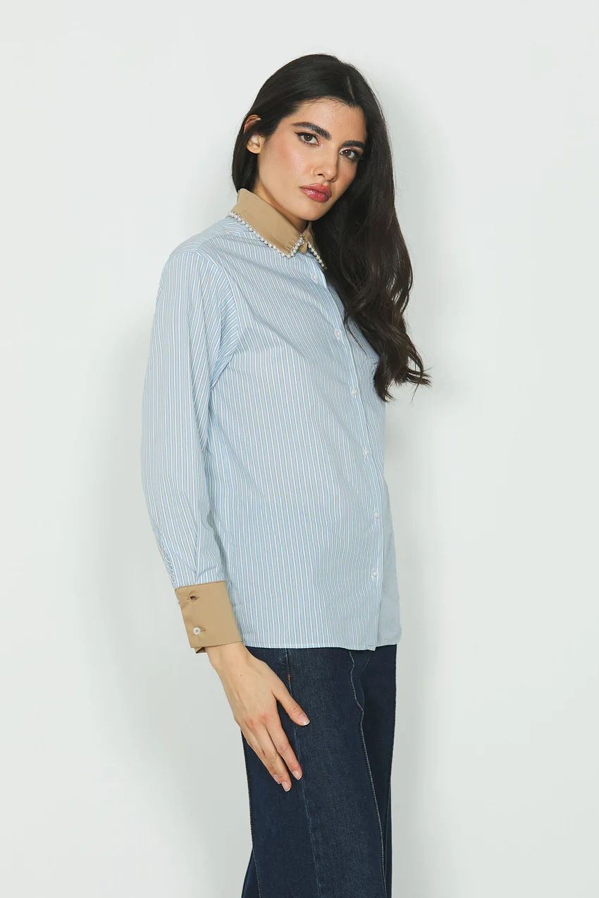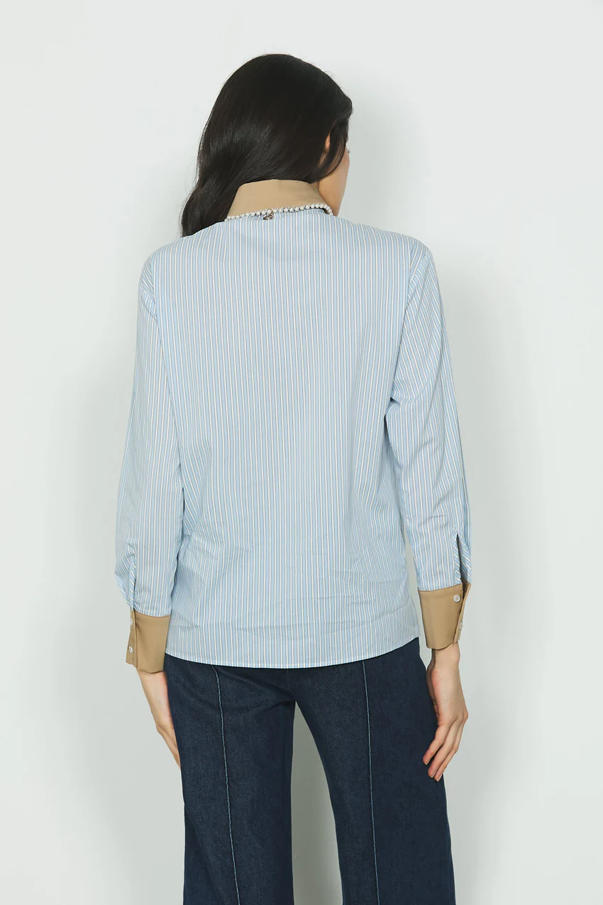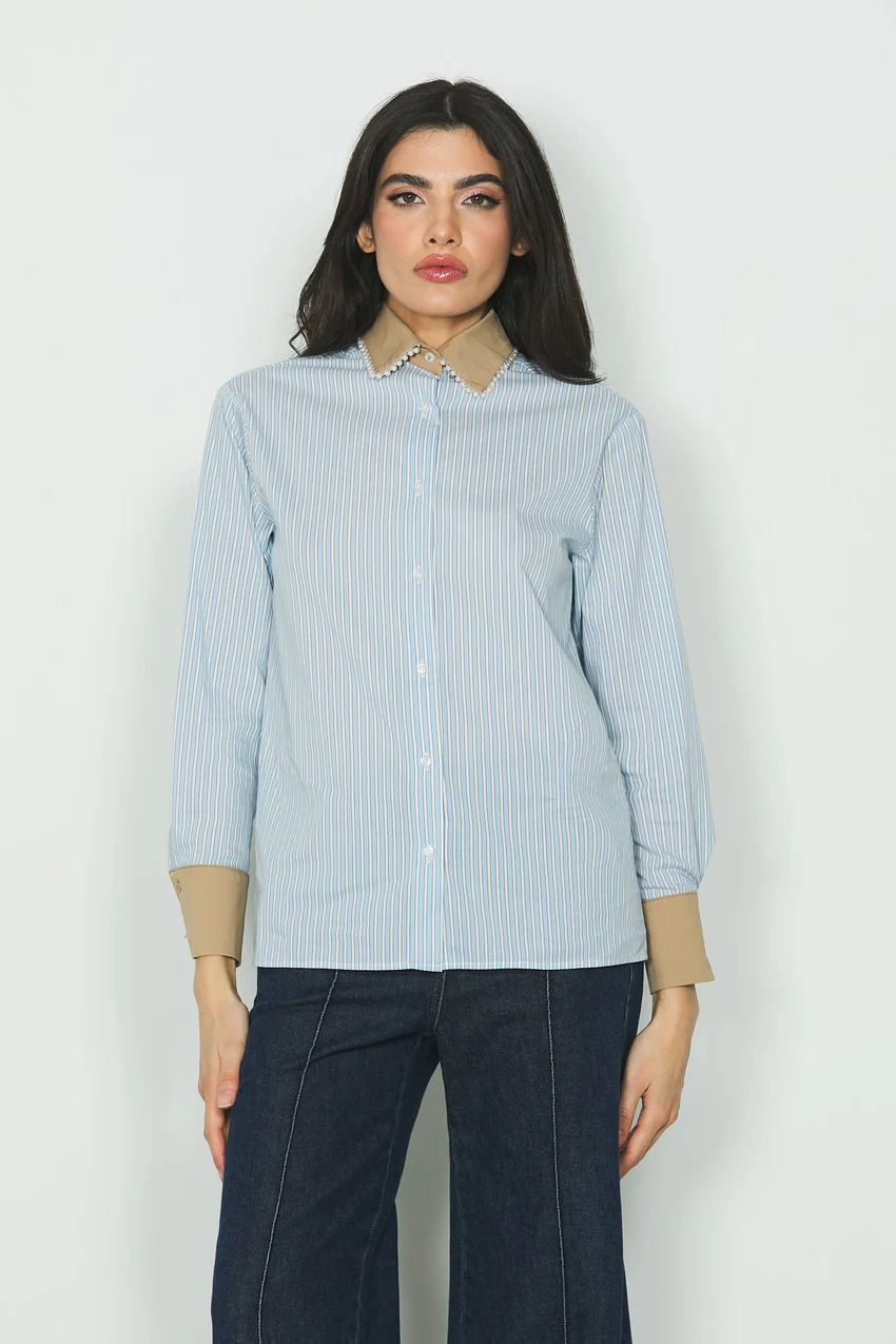 Camisa FOSCA de rayas manga larga con puños a contraste y aplicación de perlas