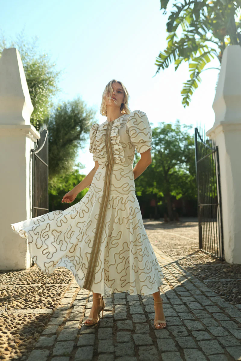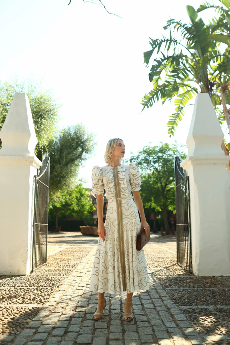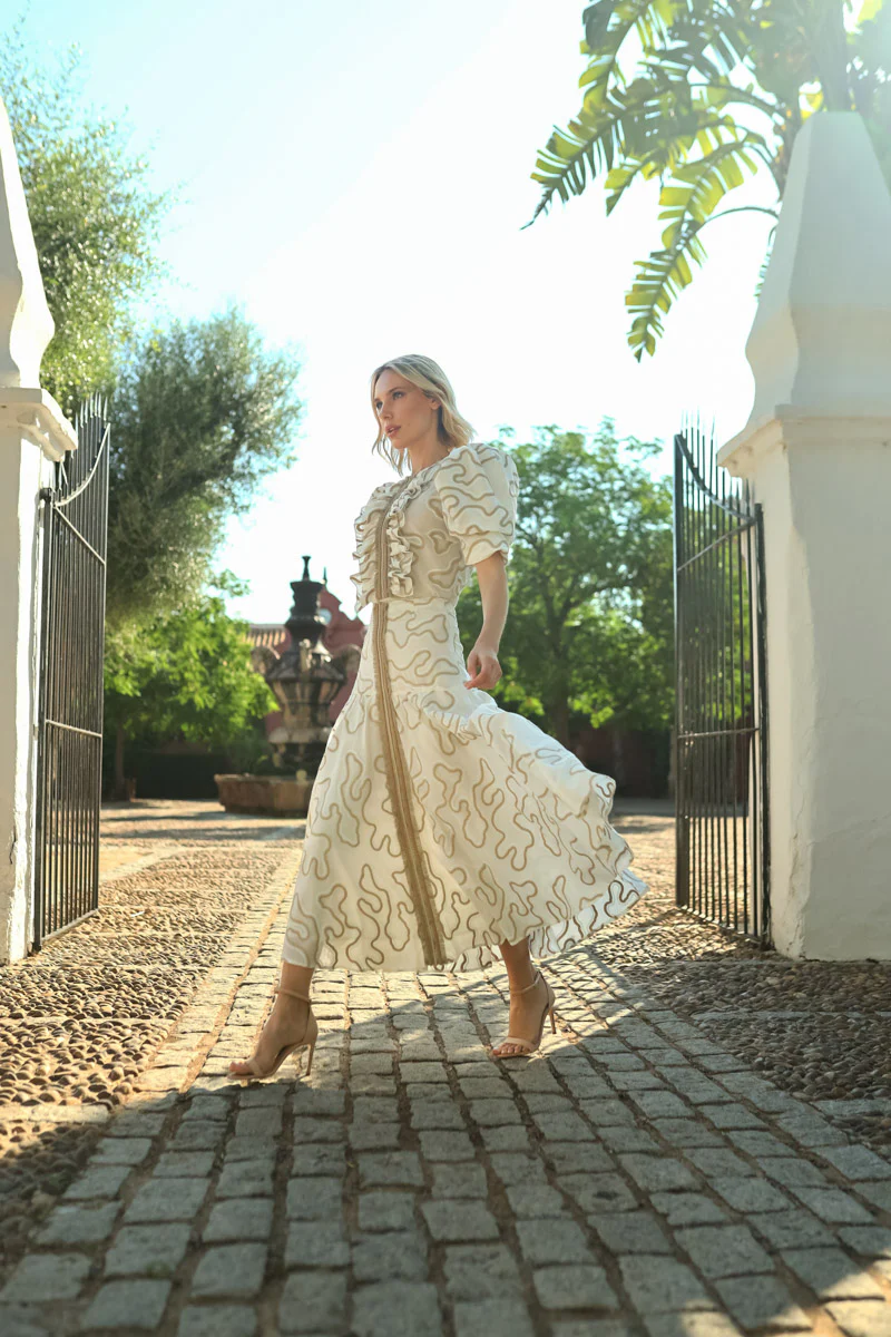 Falda midi con un corte fluido y un diseño bordado a juego con la camisa Lamin. Su caída ligera y los detalles texturizados la hacen ideal para eventos de día o de noche, ofreciendo movimiento y elegancia.