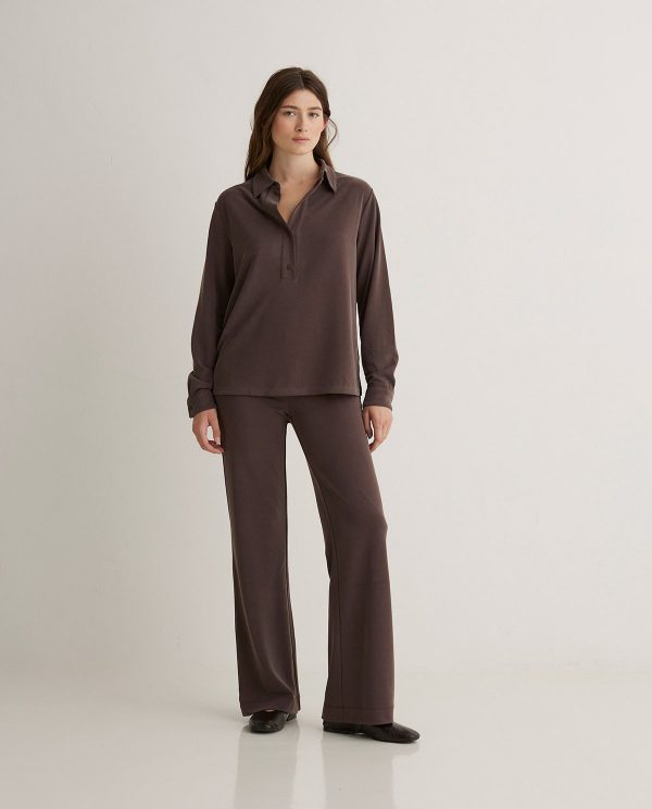 Camisa punto cuello polo chocolate