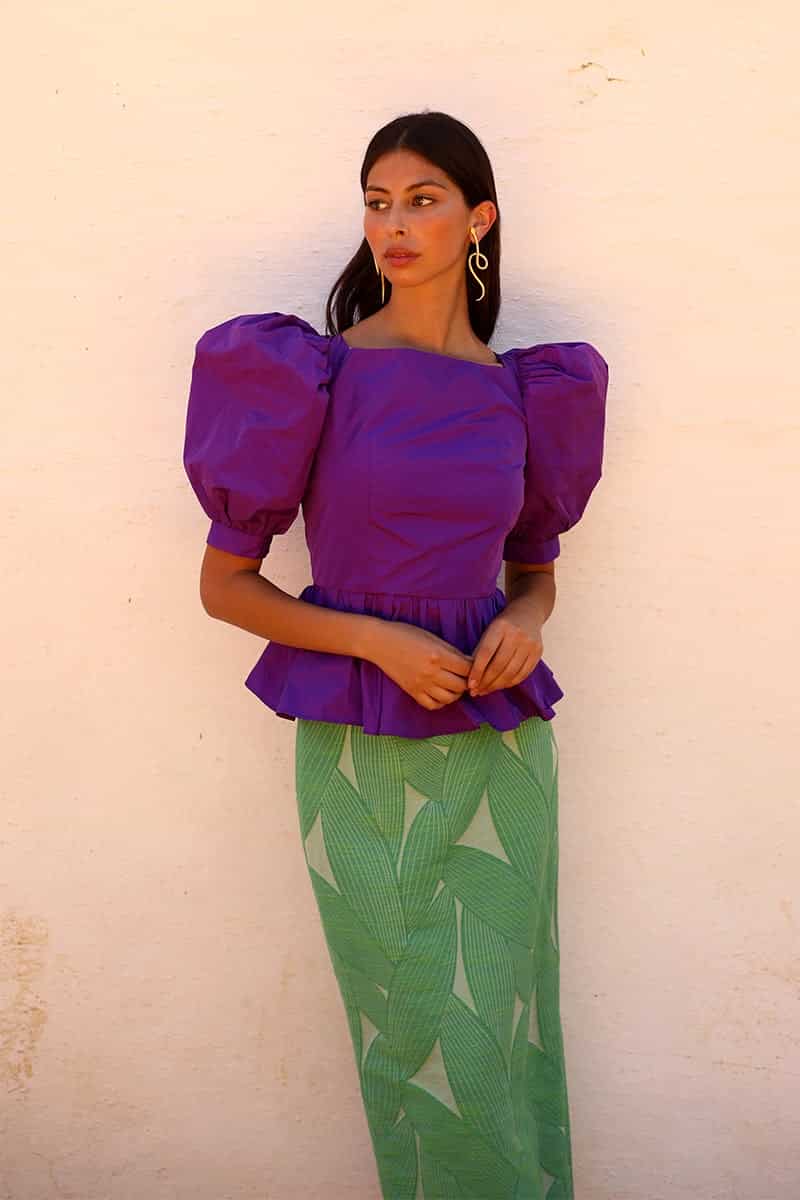 Este top lo tiene todo, y será tu próxima prenda estrella para combinar con tu mejor falda o con tus jeans favoritos. Manga abullonadas, volante en el bajo y espectacular espalda descubierta con cintas cruzadas.