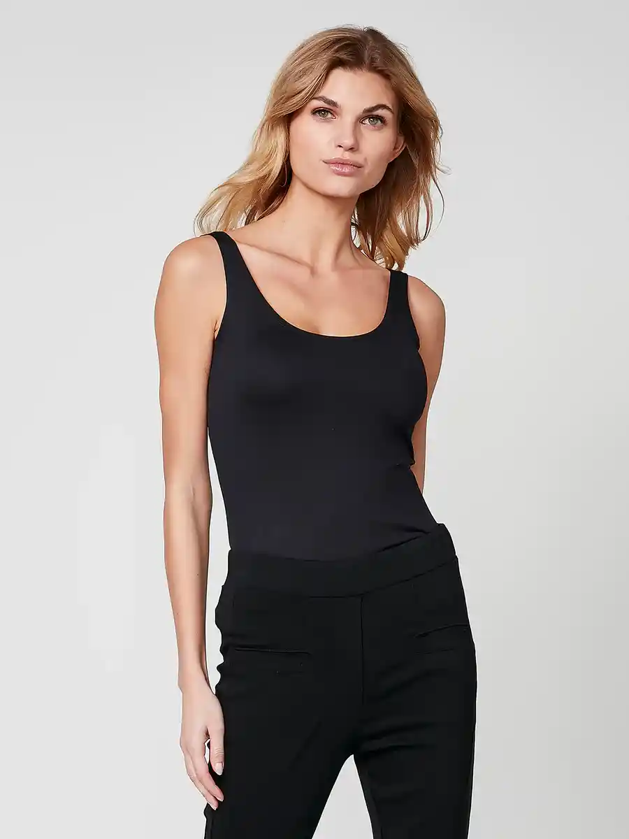 Top básico súper suave en un tejido muy elástico que conserva su ajuste lavado tras lavado. La parte superior tiene un buen ajuste ceñido y no tiene tirantes. La camiseta se puede combinar con casi cualquier cosa y, al mismo tiempo, proporciona una comodidad fantástica.
