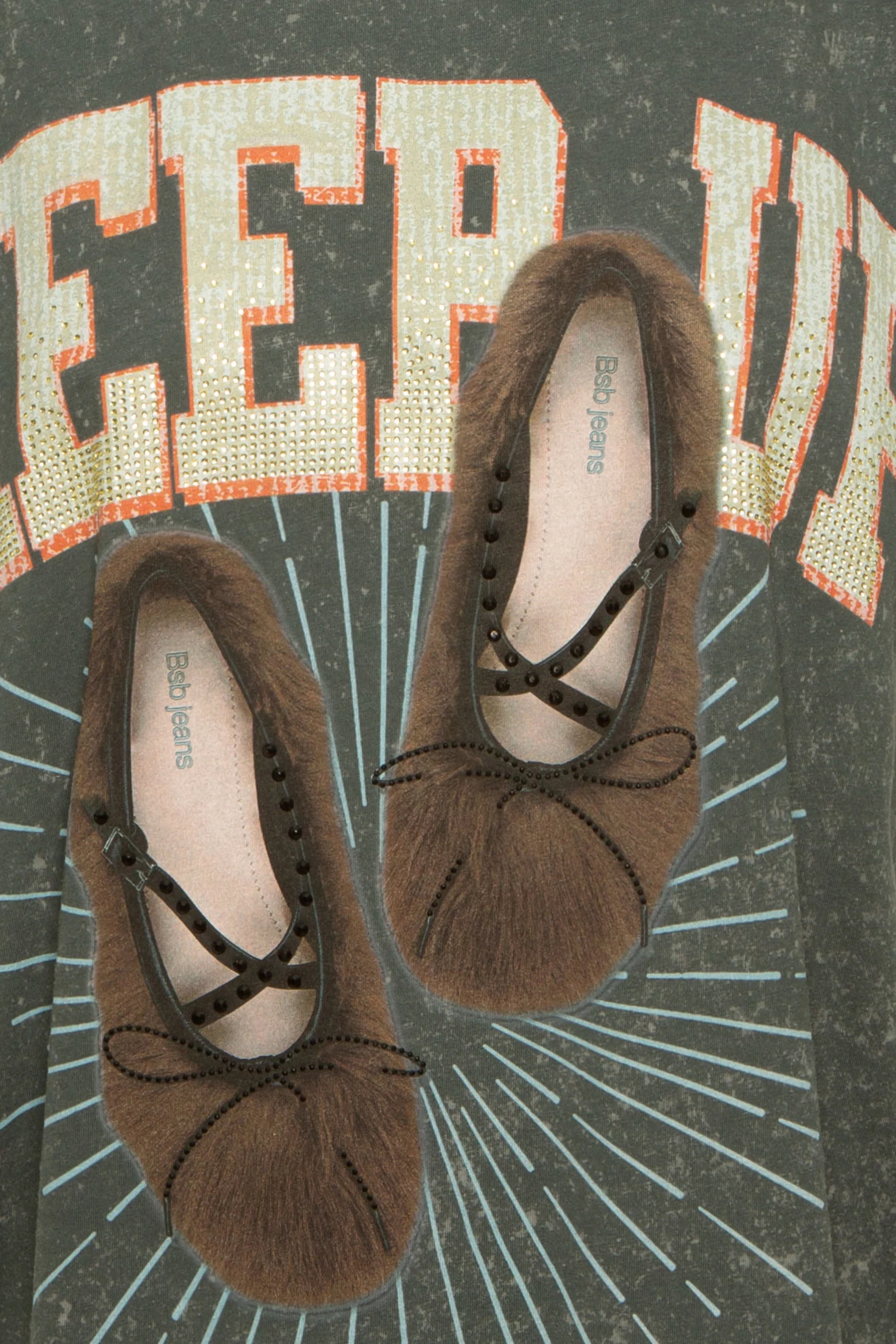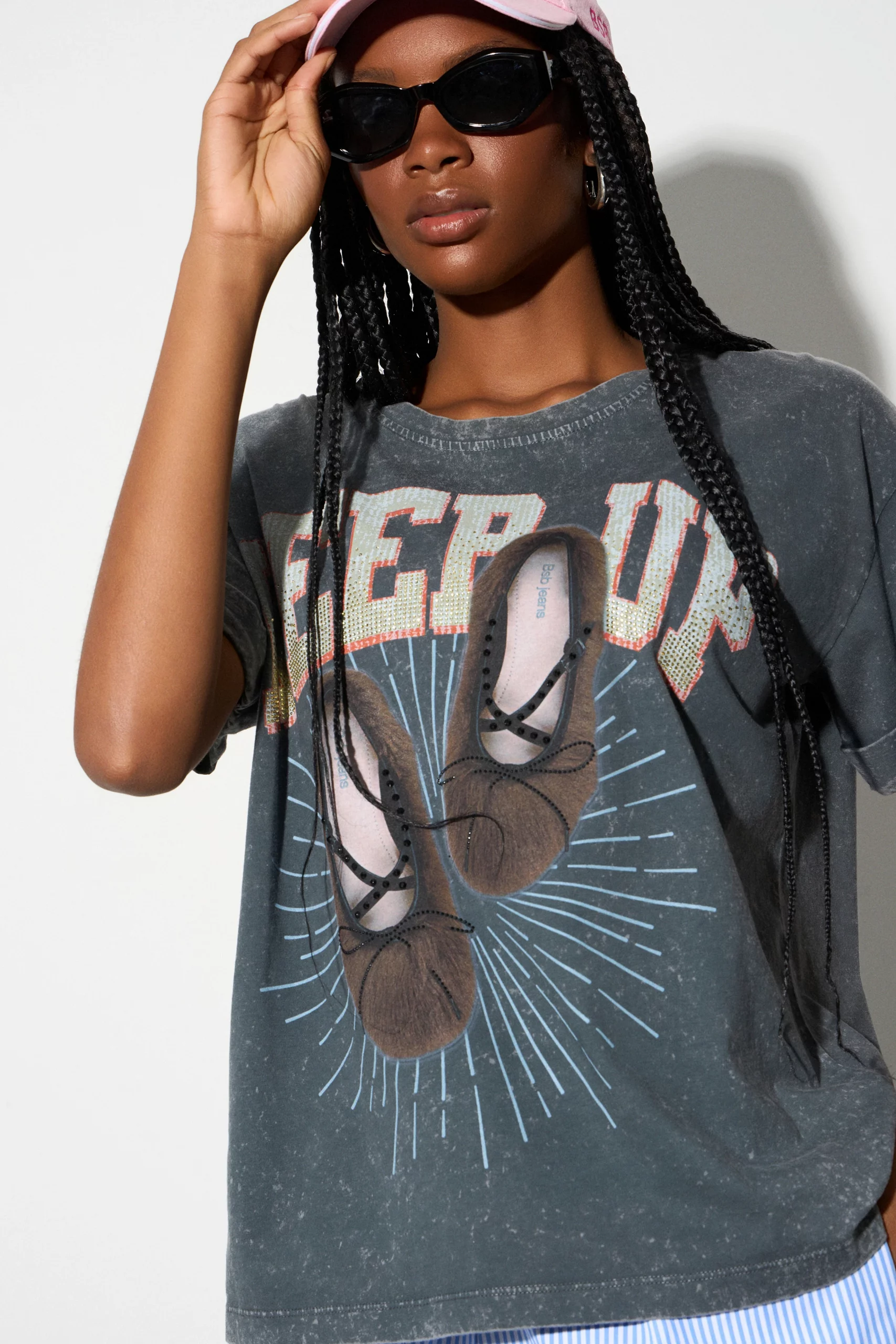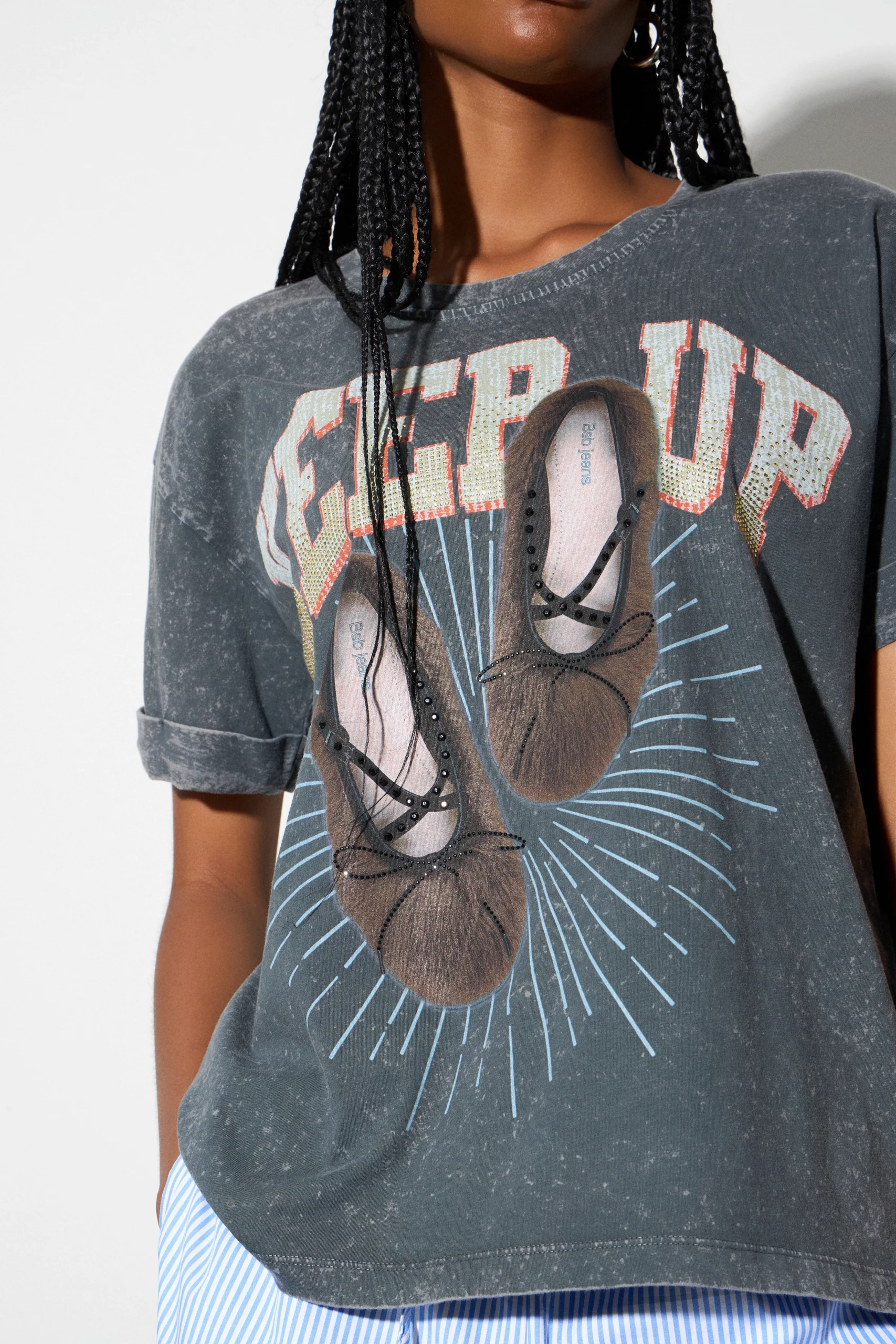 Camiseta estampada, escote redondo, diseño recto, algodón
