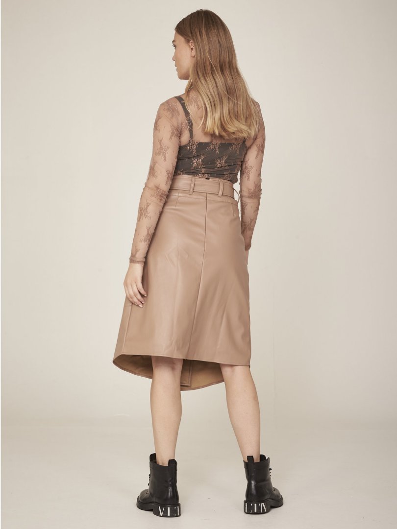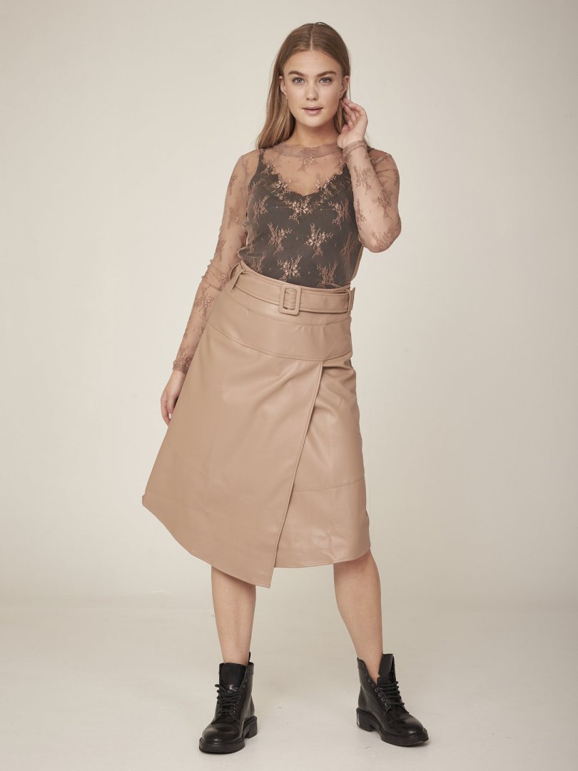 Esta hermosa blusa está decorada con hermosos encajes en las mangas, delante y detrás. La blusa tiene cuello alto y está hecha de un material transparente y elástico. Como la tela es ligeramente transparente, se puede combinar fácilmente con una de nuestras blusas básicas, para evitar que se vea a través. Use esta blusa debajo de camisetas, blusas o camisas para agregar un bonito detalle de encaje al atuendo.