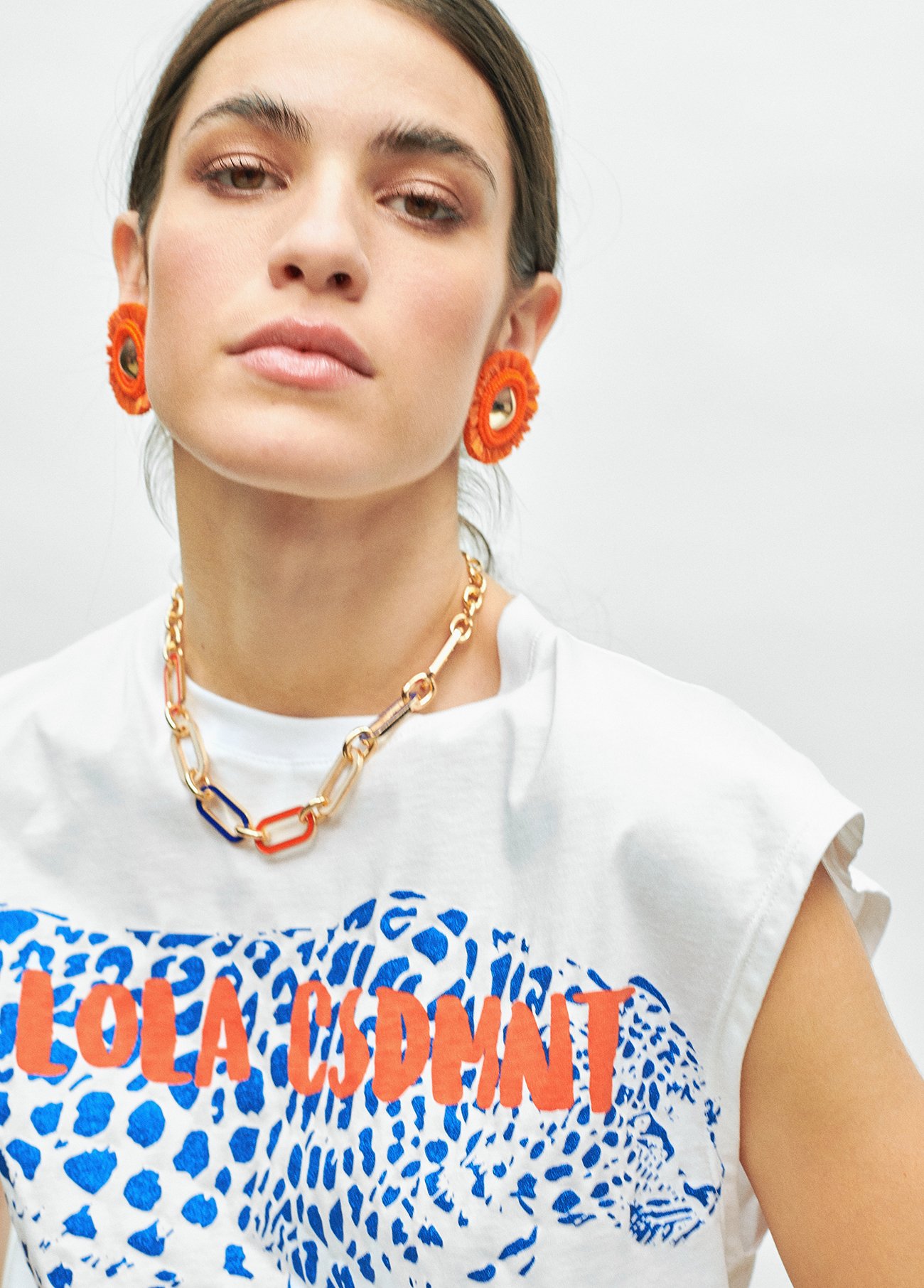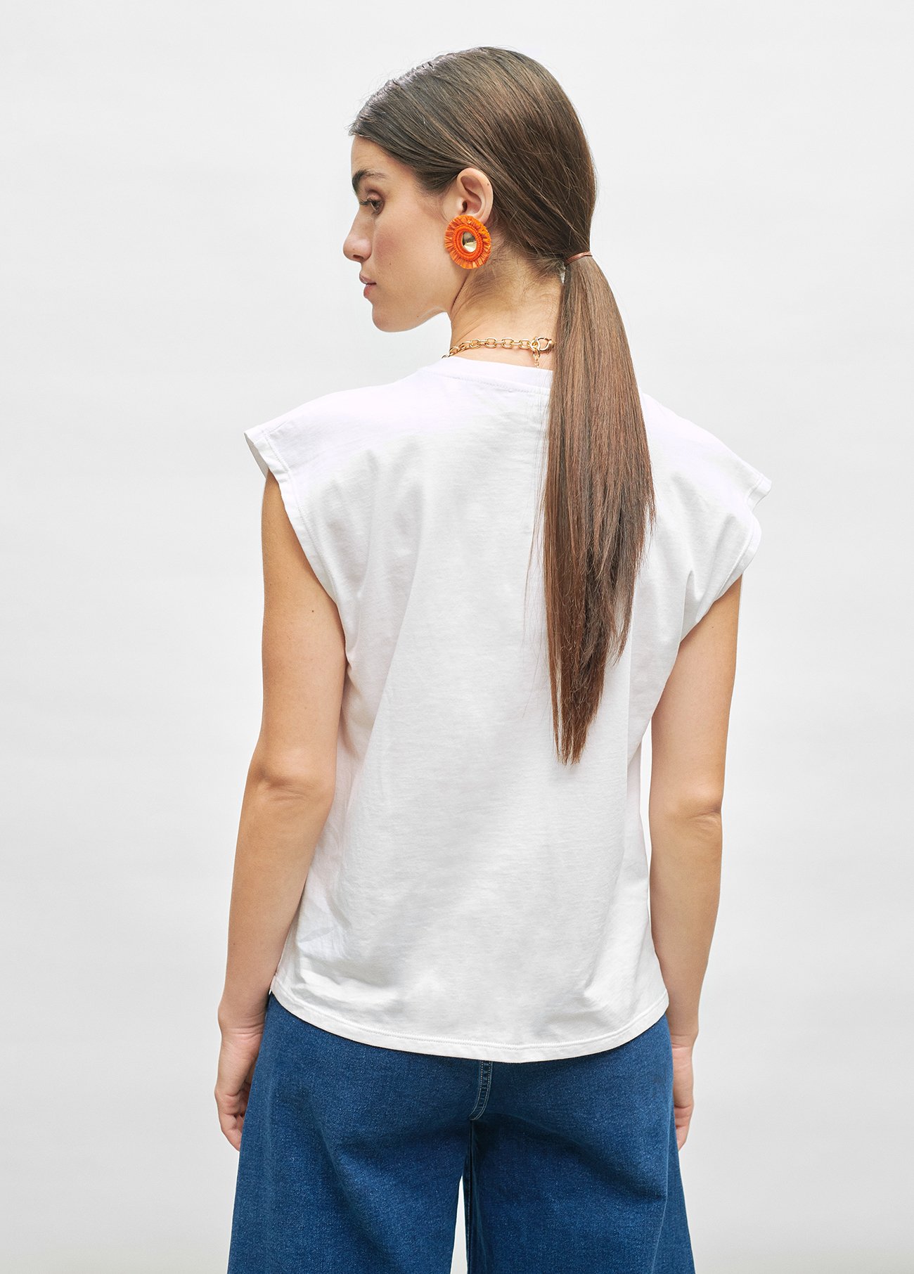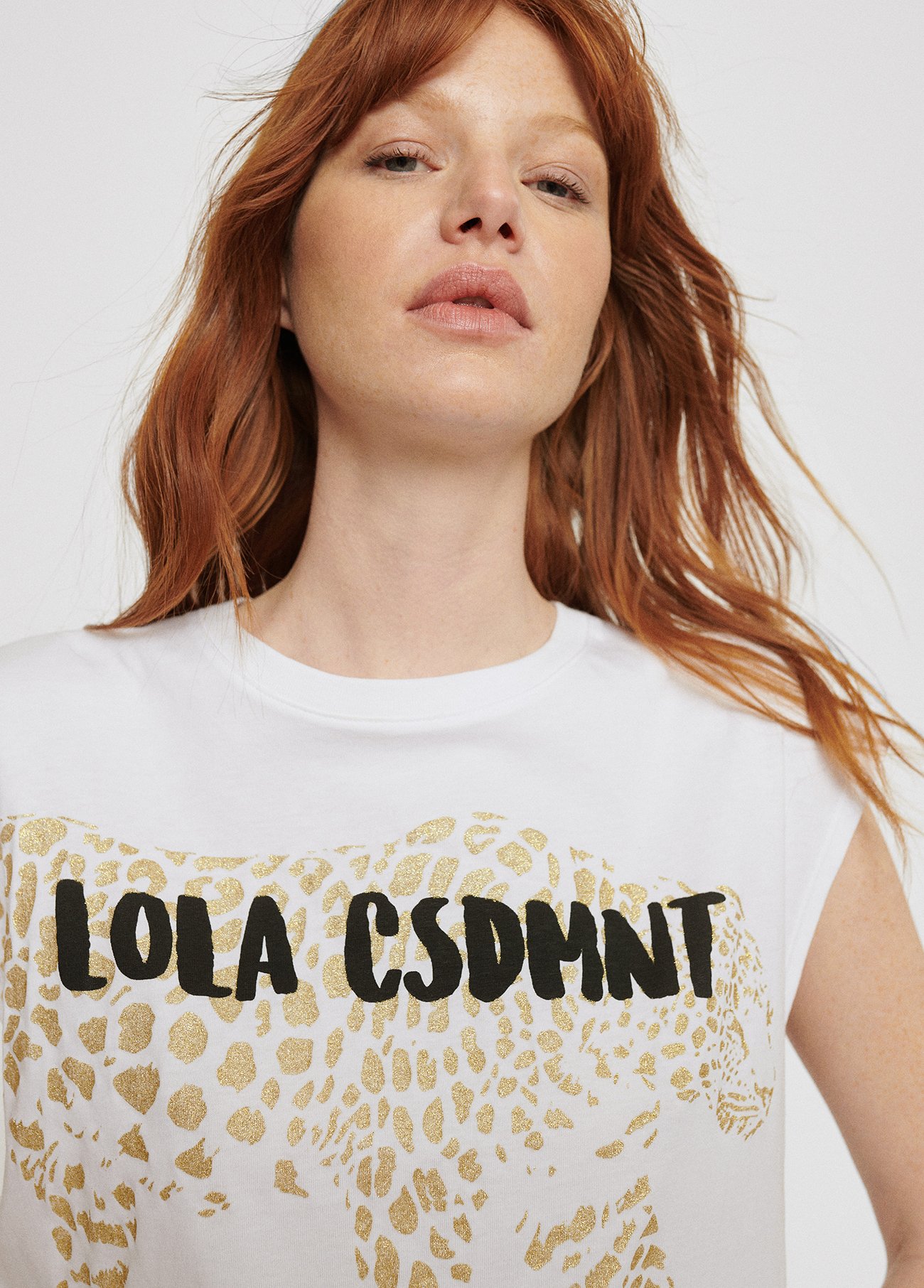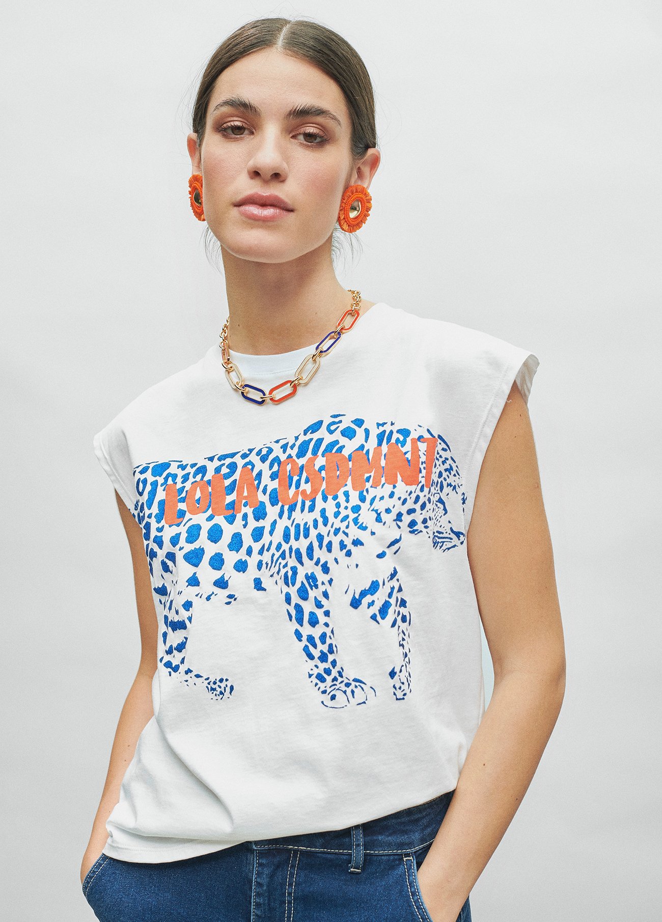 Camiseta con tigre estampado en color dorado. Manga media al hombro.