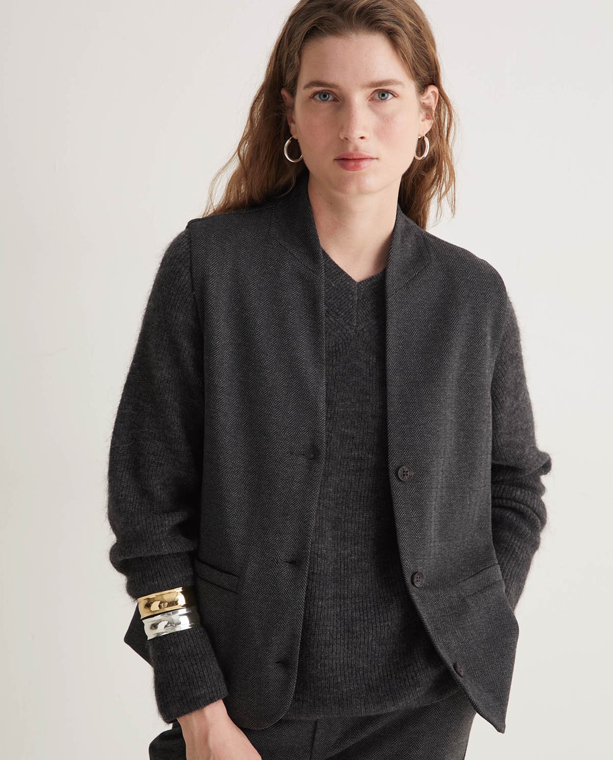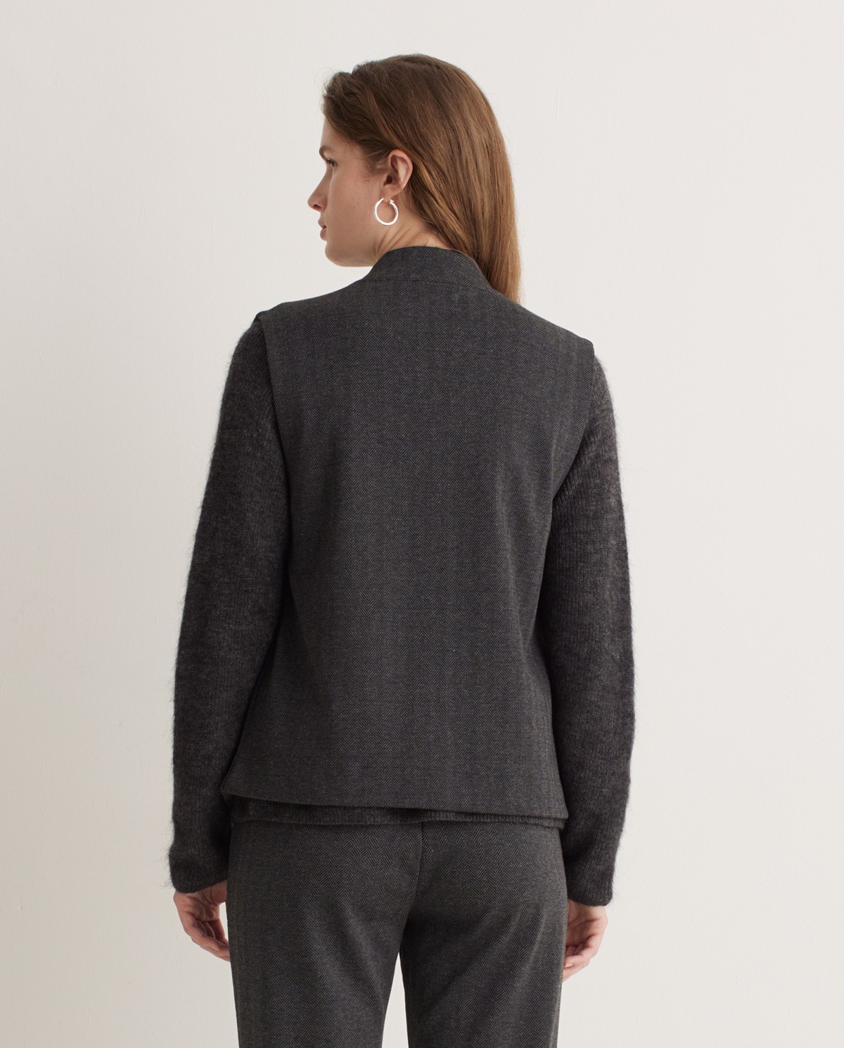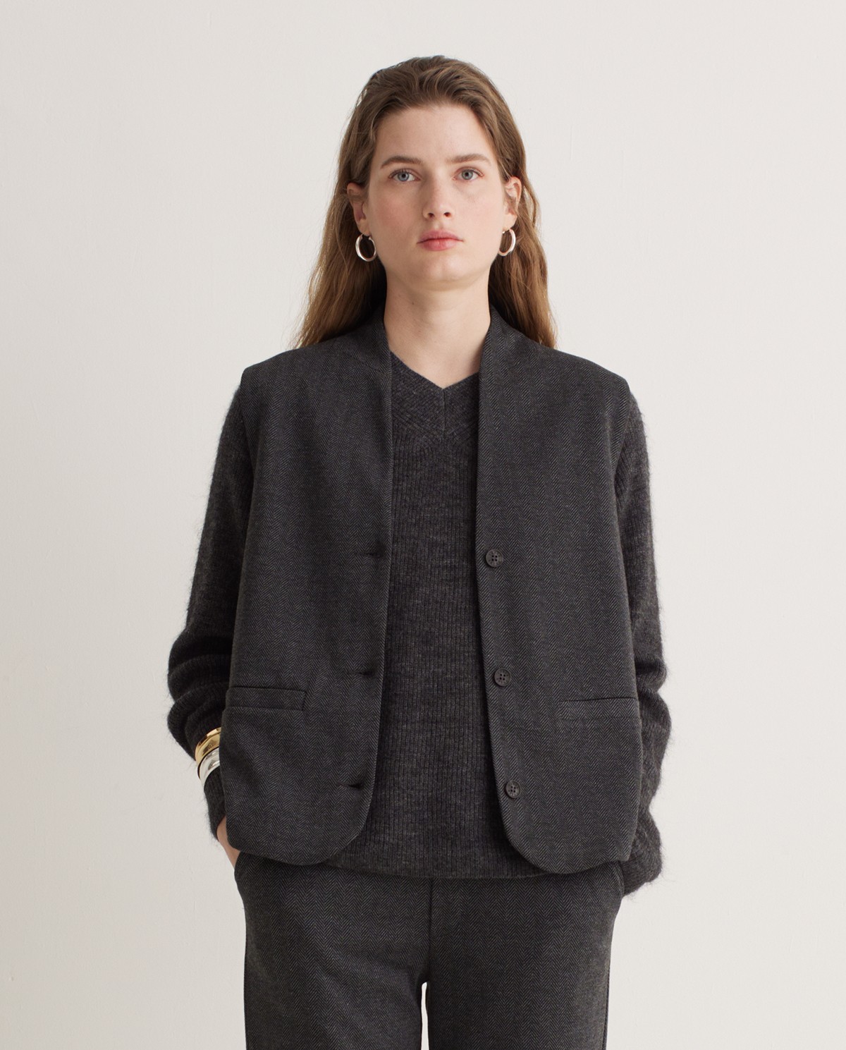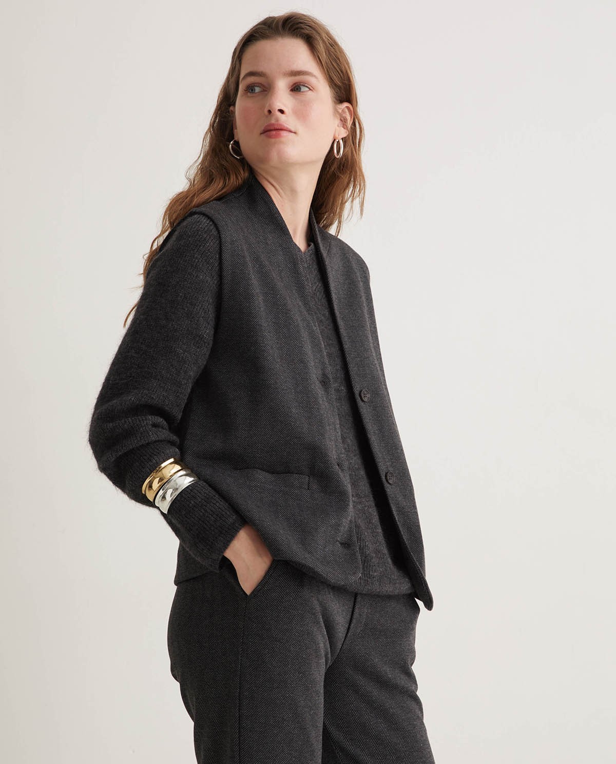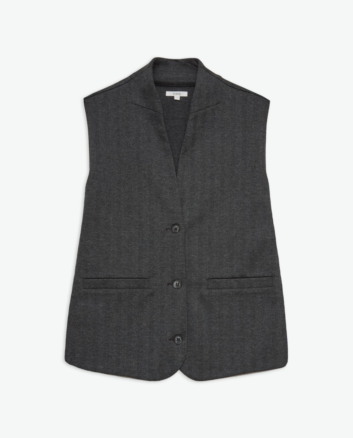 Chaleco de punto. Tejido de espiga. Regular fit. Escote pico. Sin mangas. Cierre frontal con botones. Bolsillos frontales de vivo.