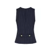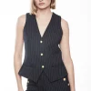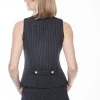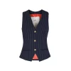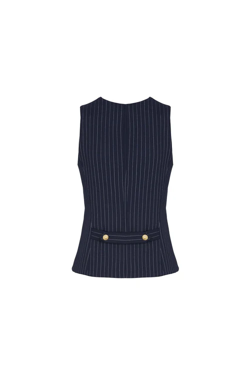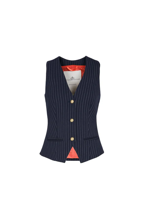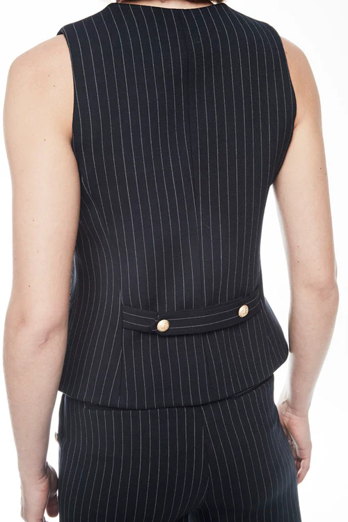 El Chaleco Raya Diplomática Marino Atelier combina tradición sartorial y diseño moderno, ofreciendo una pieza única que celebra la elegancia clásica con un giro contemporáneo. Este chaleco presenta un corte entallado que estiliza la silueta femenina, confeccionado en un tejido que resalta la sofisticación del patrón de raya diplomática. Su escote en «V» profundo y los botones dorados al frente añaden un toque de lujo, mientras que los bolsillos decorativos y el forro interior en tono naranja aportan contraste y carácter artesanal, sello distintivo de The Extreme Collection. En la parte trasera, un refinado detalle de botones completa este diseño con una estética cuidada y versátil. Perfecto para lucirlo junto con la blazer y pantalón a juego o como pieza protagonista, el Chaleco Raya Diplomática Marino Atelier es ideal para mujeres que buscan prendas con distinción y personalidad.