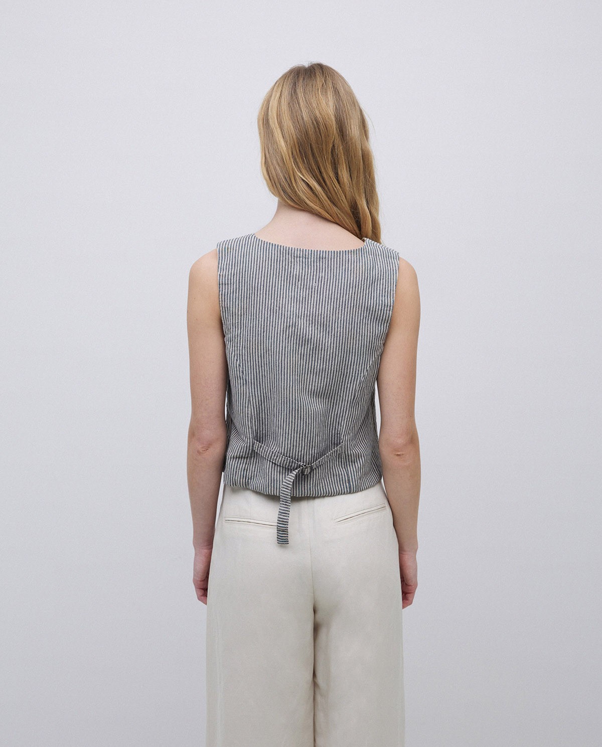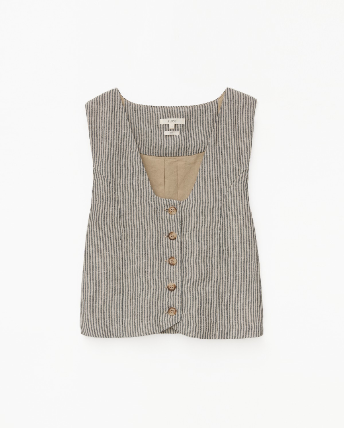 Chaleco rayas mezcla lino azul grisáceo YERSE
