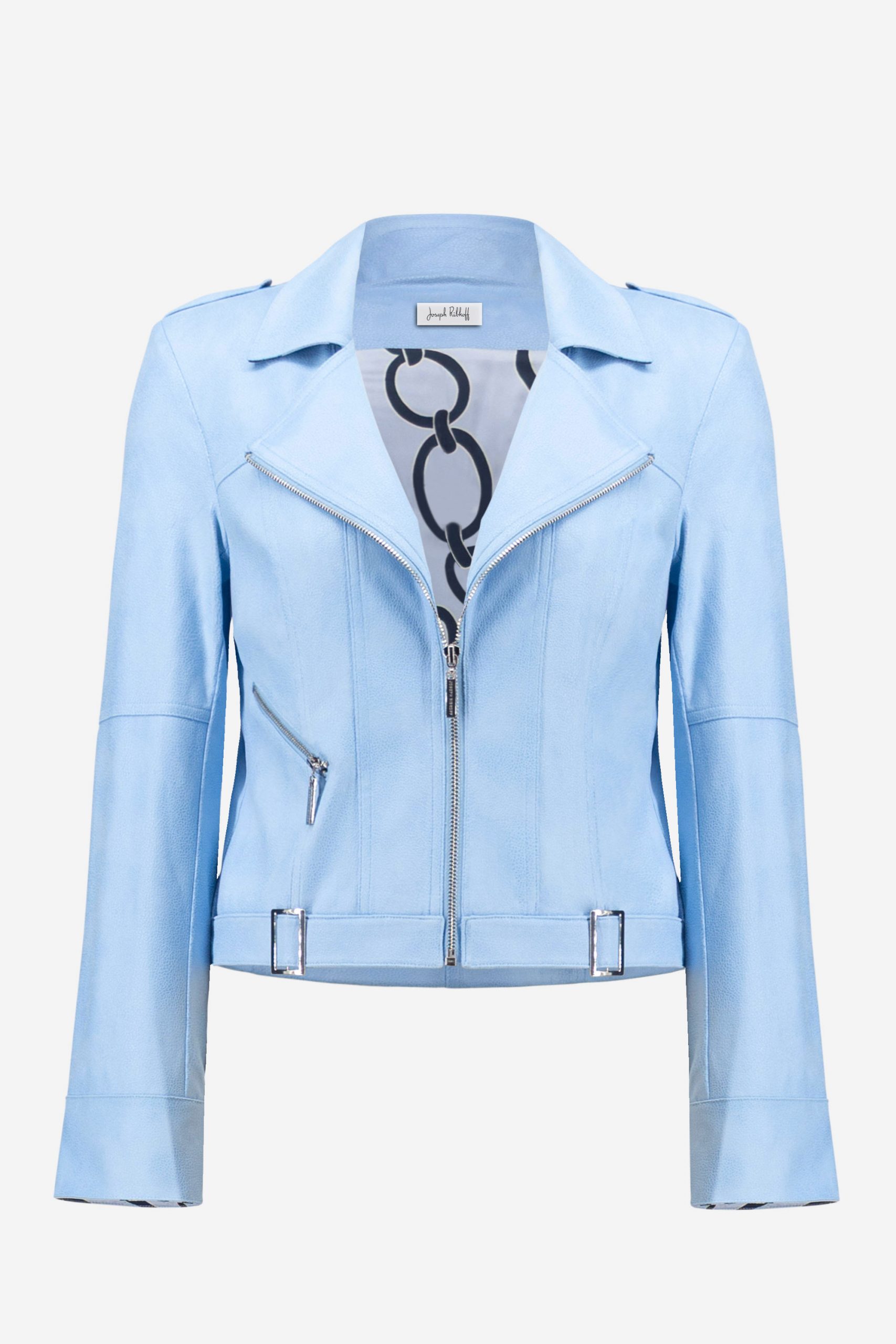 Esta chaqueta entallada de gamuza sintética metalizada cuenta con cierre de cremallera frontal, cremalleras decorativas en los bolsillos y puños con broches a presión. Las hebillas decorativas en el bajo delantero le dan un toque elegante, mientras que el forro de satén estampado realza su tacto lujoso.