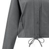 Esta chaqueta estilo blusa combina un look casual con un toque femenino. Diseñada con cuello clásico, cierre de botones, corte holgado y mangas largas. La cintura presenta delicados pliegues y un lazo ajustable para personalizar el ajuste. Confeccionada en tela suave para mayor comodidad y estilo. La modelo mide 176 cm y usa la talla 36.