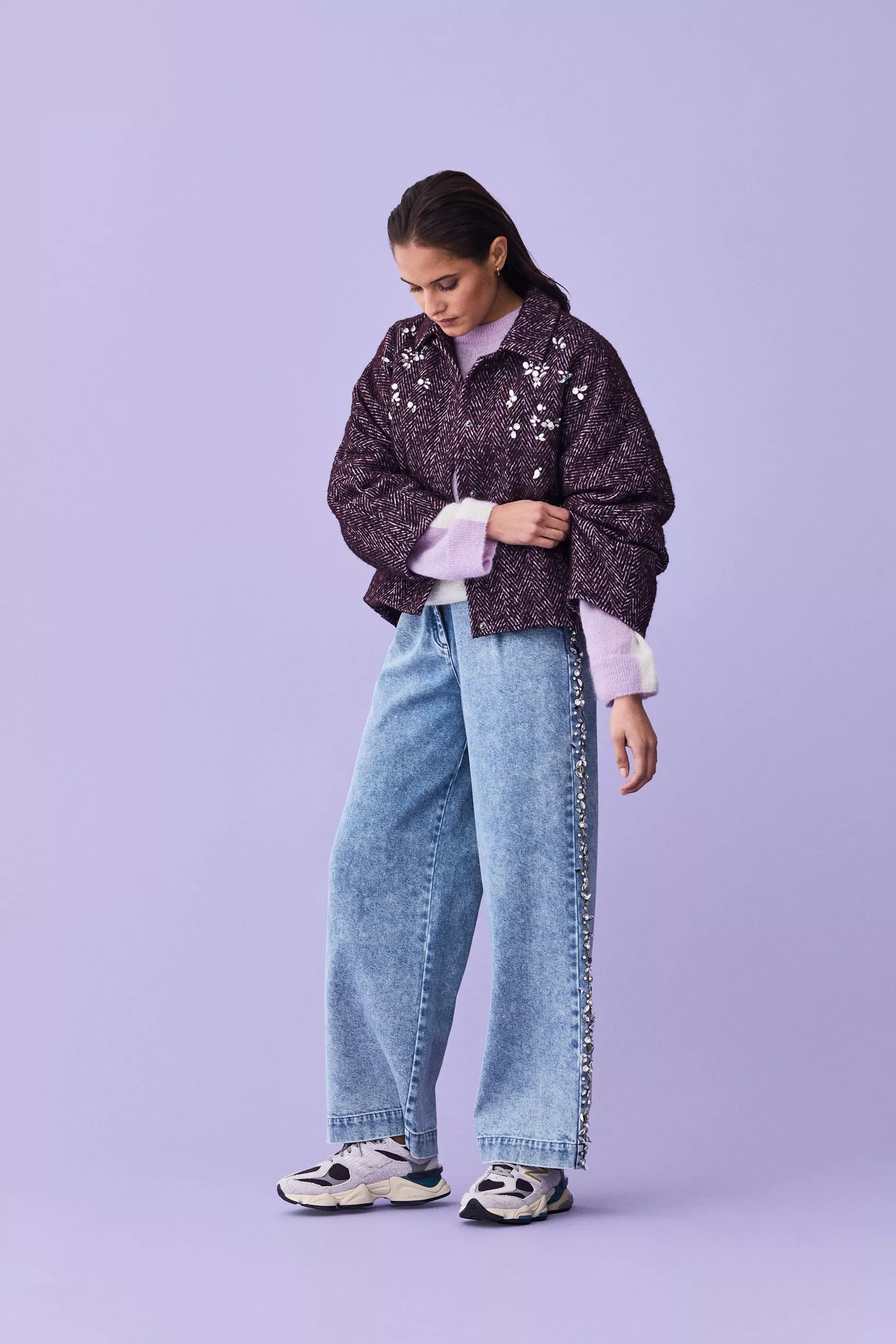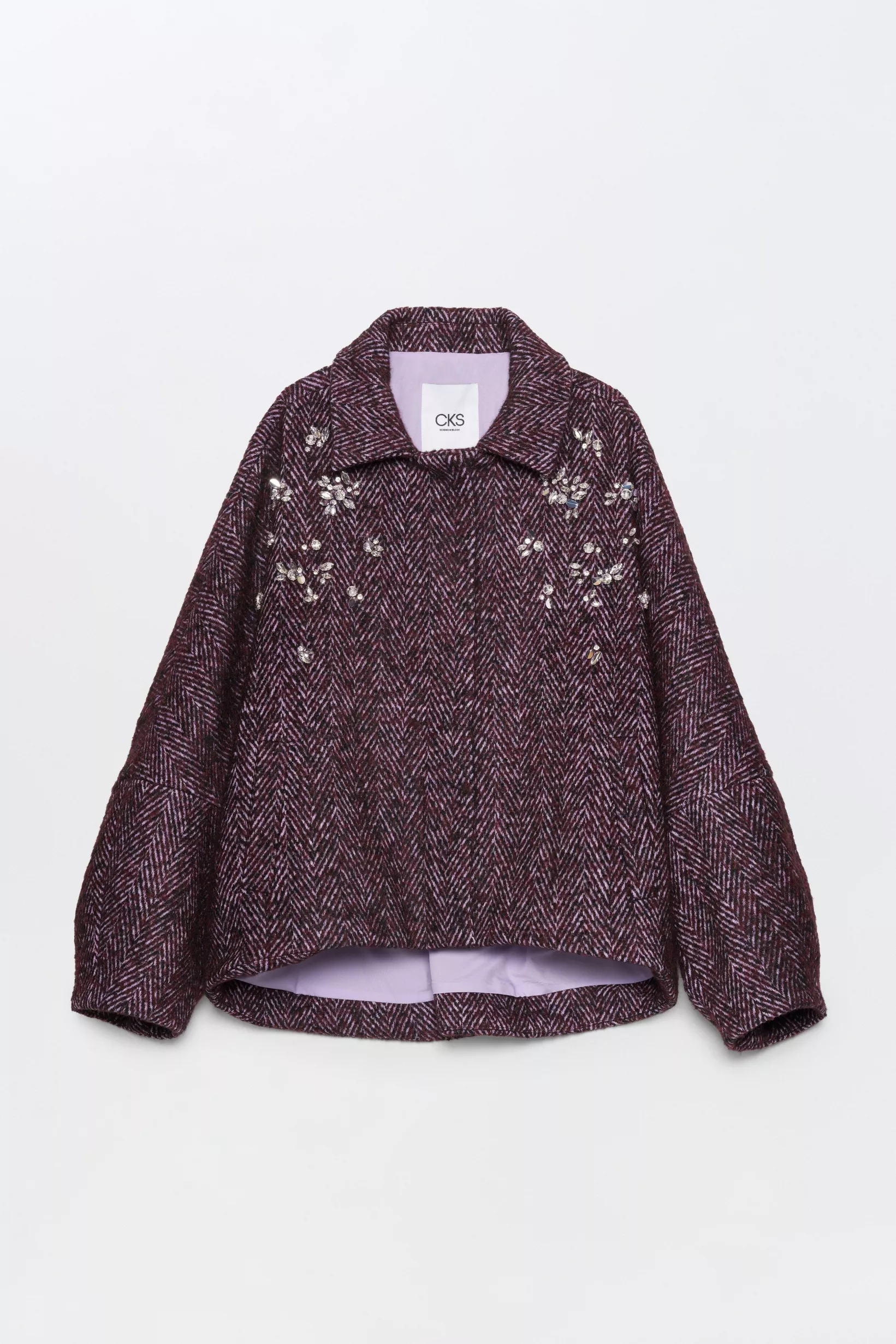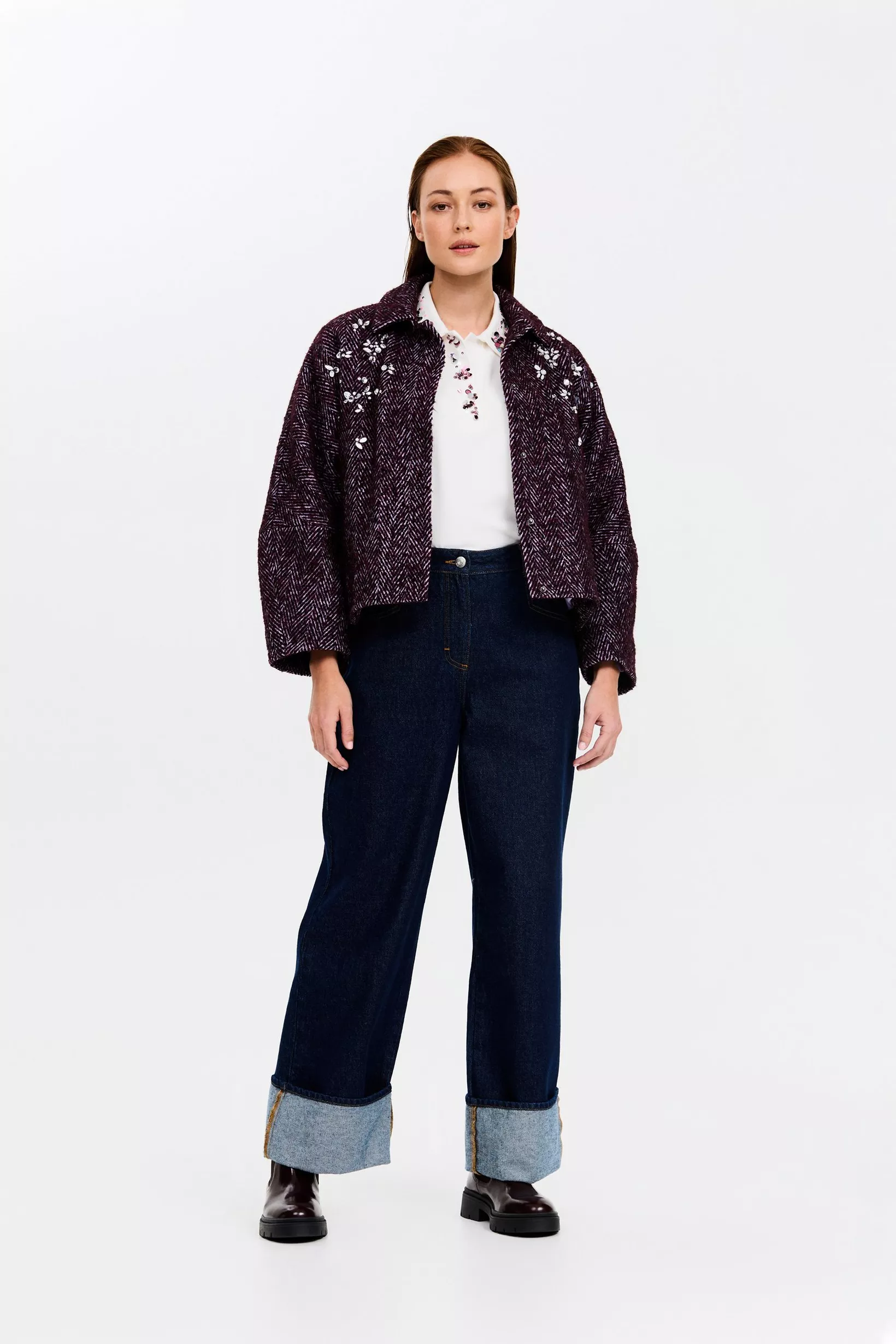 Enfrentate al frio con estilo con este abrigo corto y sencillo de tweed con estampado de espiga. Presenta cuello abotonado,bolsillos, broches y mangas globo redondeadas. El toque final perfecto.