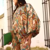 El conjunto NINA es una pieza cautivadora que fusiona elegancia atemporal con un espíritu bohemio. Su estampado paisley en tonos cálidos y vibrantes, la convierte en un verdadero protagonista. Confeccionada en un tejido liviano y fluido, destaca por su silueta amplia, mangas globo con puños fruncidos y cuello alto que aporta un aire sofisticado y moderno.