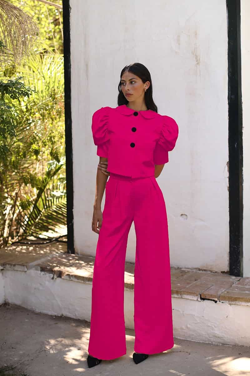 Una camisa clásica y moderna a la vez, confeccionada en tweed de algodón la camisa Baby es perfecta para completar tu total look en fucsia con el pantalón Bim.