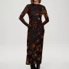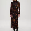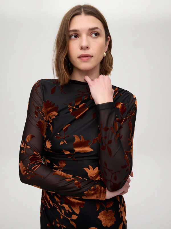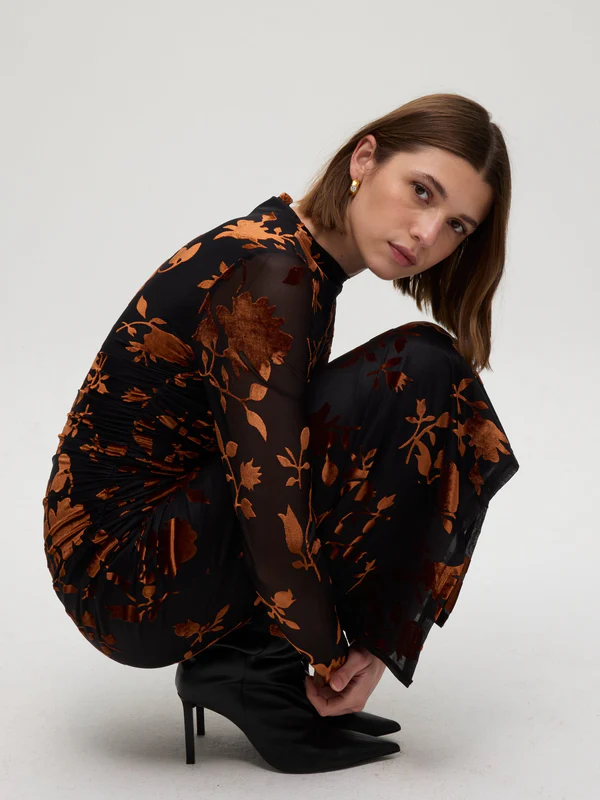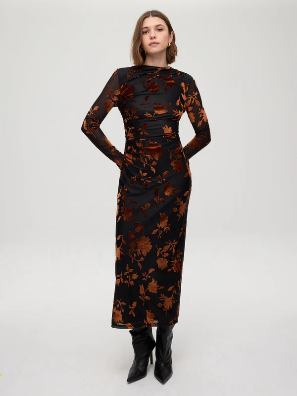 EIFFEL FLOWERS – Vestido negro flocado flores marrones