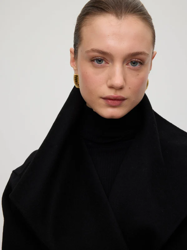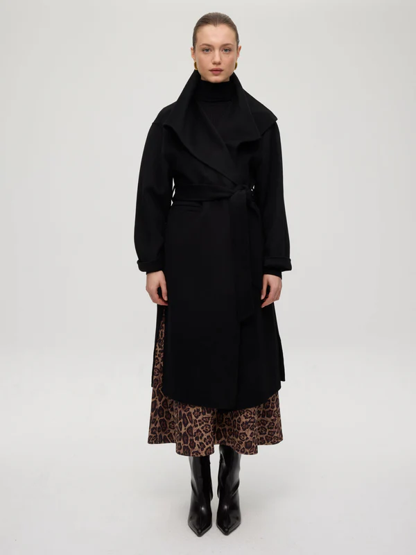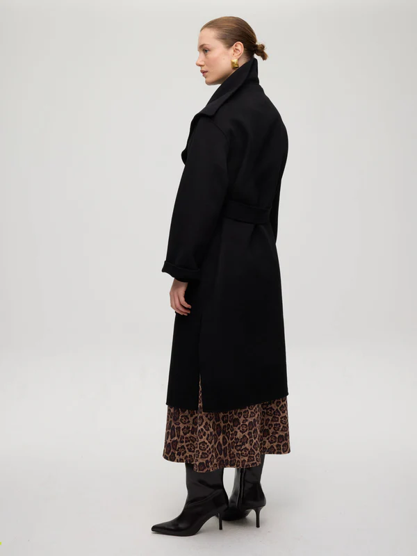 FACTORY BLACK – Abrigo largo lana paño negro