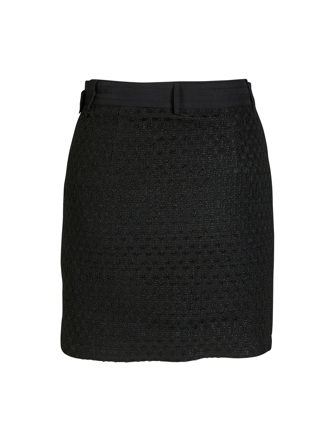 Crea una expresión elegante y moderna con esta falda estructurada de un exclusivo tejido. Presenta un frente asimétrico con botones decorativos y un distintivo detalle en el borde que le aporta un toque sofisticado. La cintura se acentúa con trabillas y un cinturón, lo que garantiza un ajuste perfecto y realza la silueta.