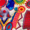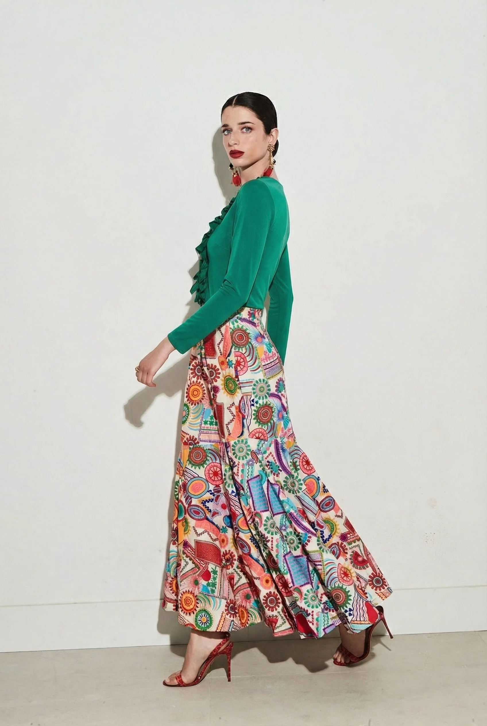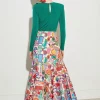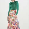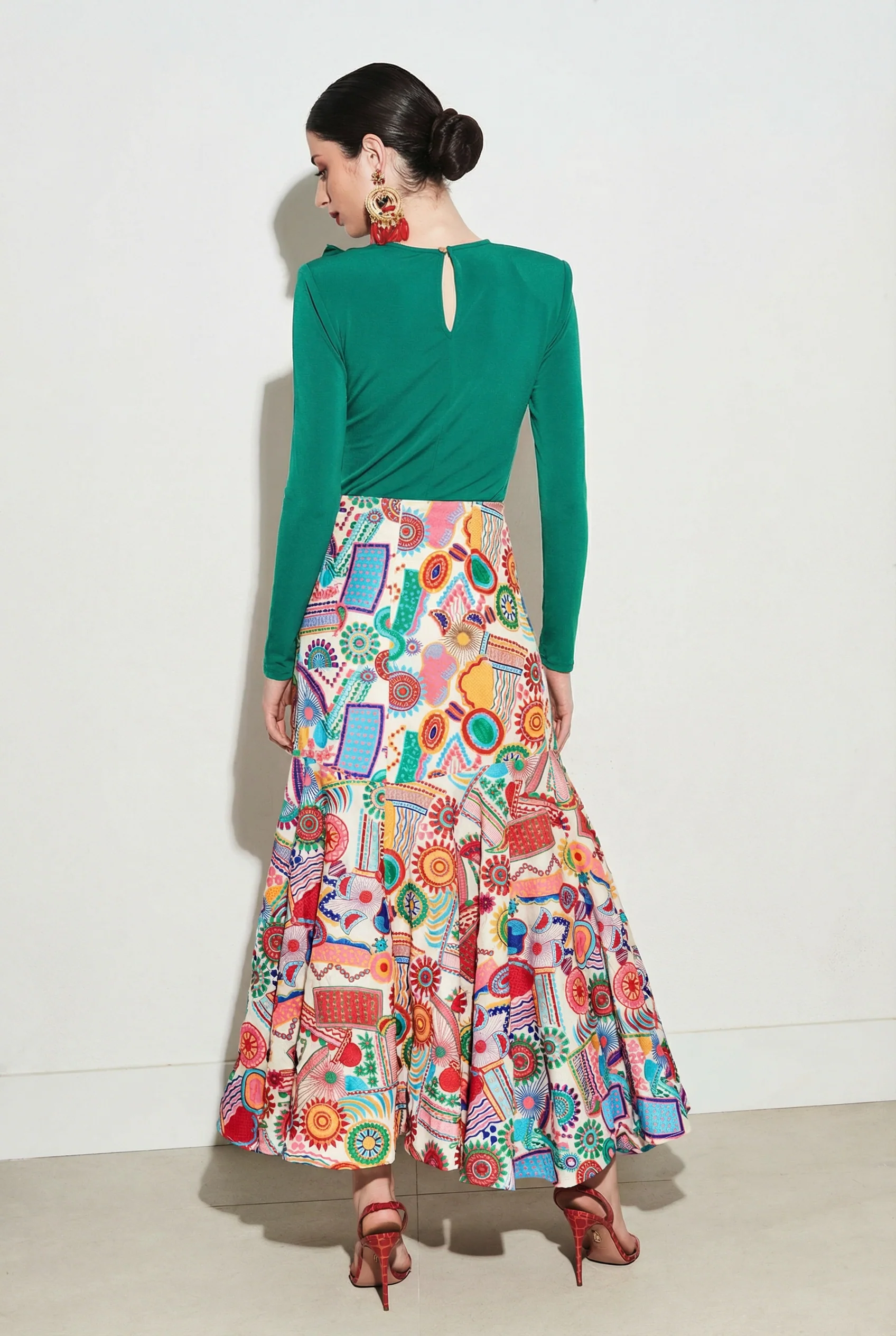 Falda bordada de silueta evasé con cintura alta y caída fluida. Estampado multicolor de inspiración artística sobre fondo claro. Cierre mediante cremallera invisible.
