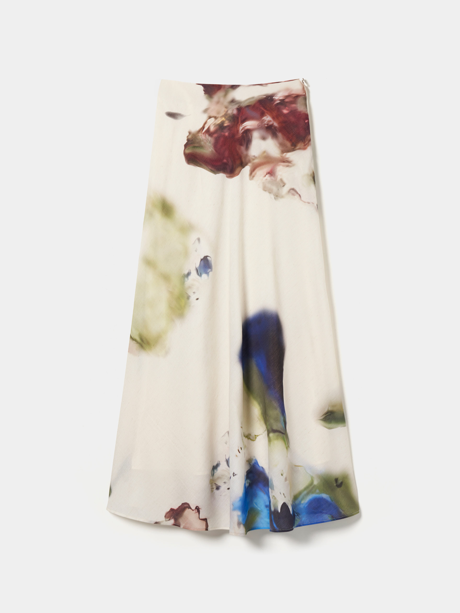 Falda larga con estampado abstracto colorido, muy elegante e ideal para tus looks de primavera-verano. Con apertura de cremallera invisible en el lateral. Con un pequeño porcentaje de lino, lo que le confiere a la pieza mayor ligereza, transpirabilidad y durabilidad. Para un outfit perfecto, combínalo con una blusa de la misma colección.