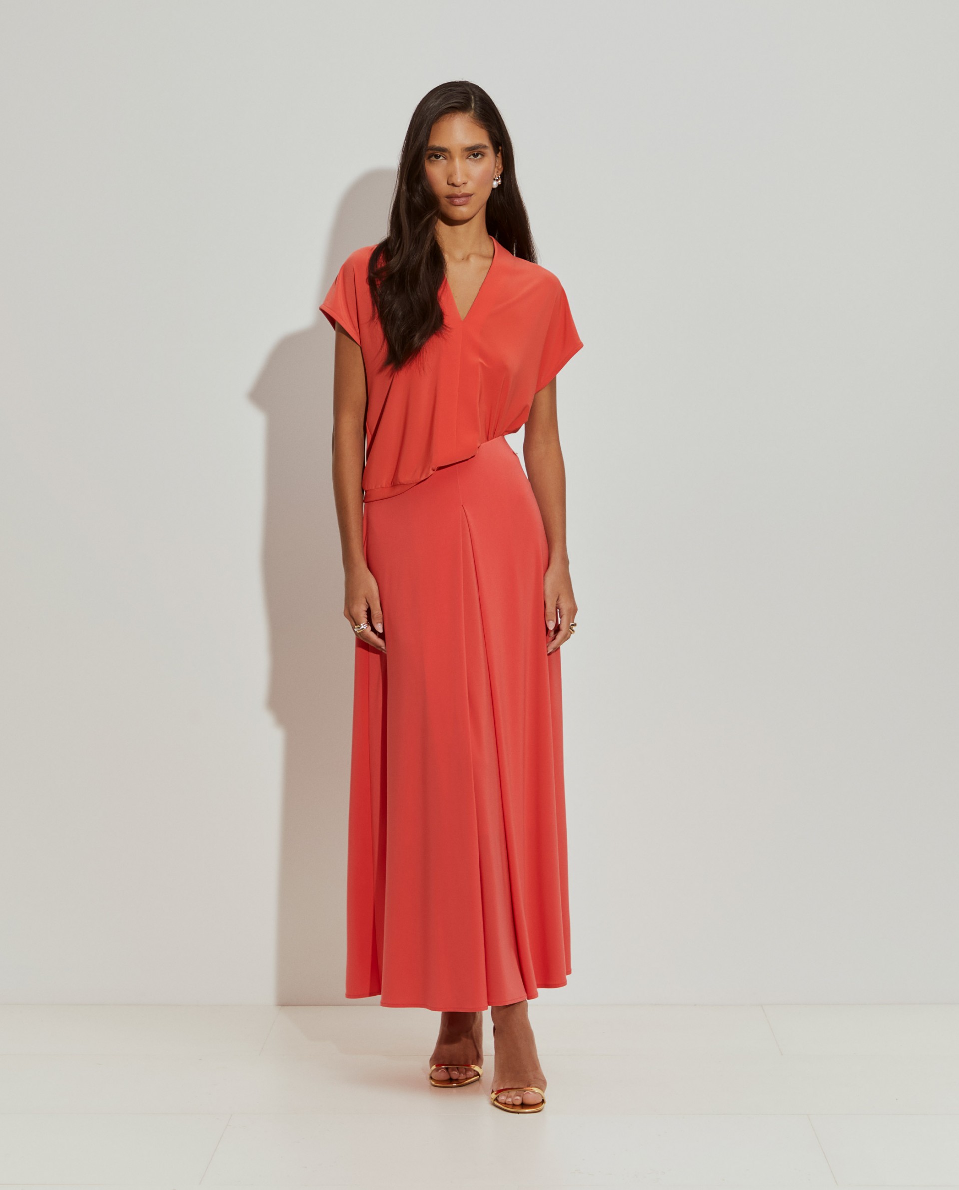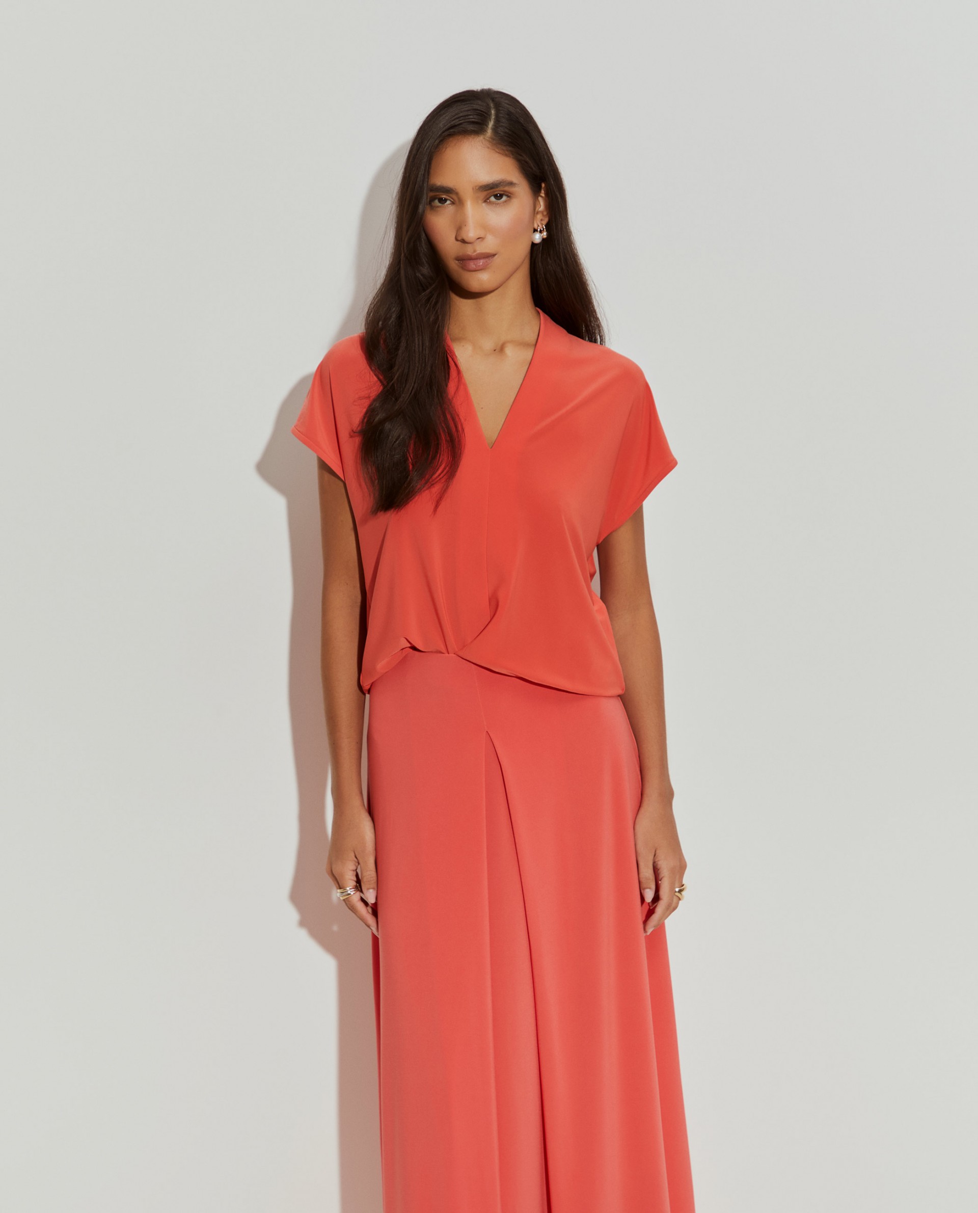 Falda midi de punto, muy elegante y cómoda. Con cintura elástica y ojal en la parte delantera para darle mayor fluidez a la pieza. Cintura elástica. Haz la combinación perfecta con el top de la misma colección.
