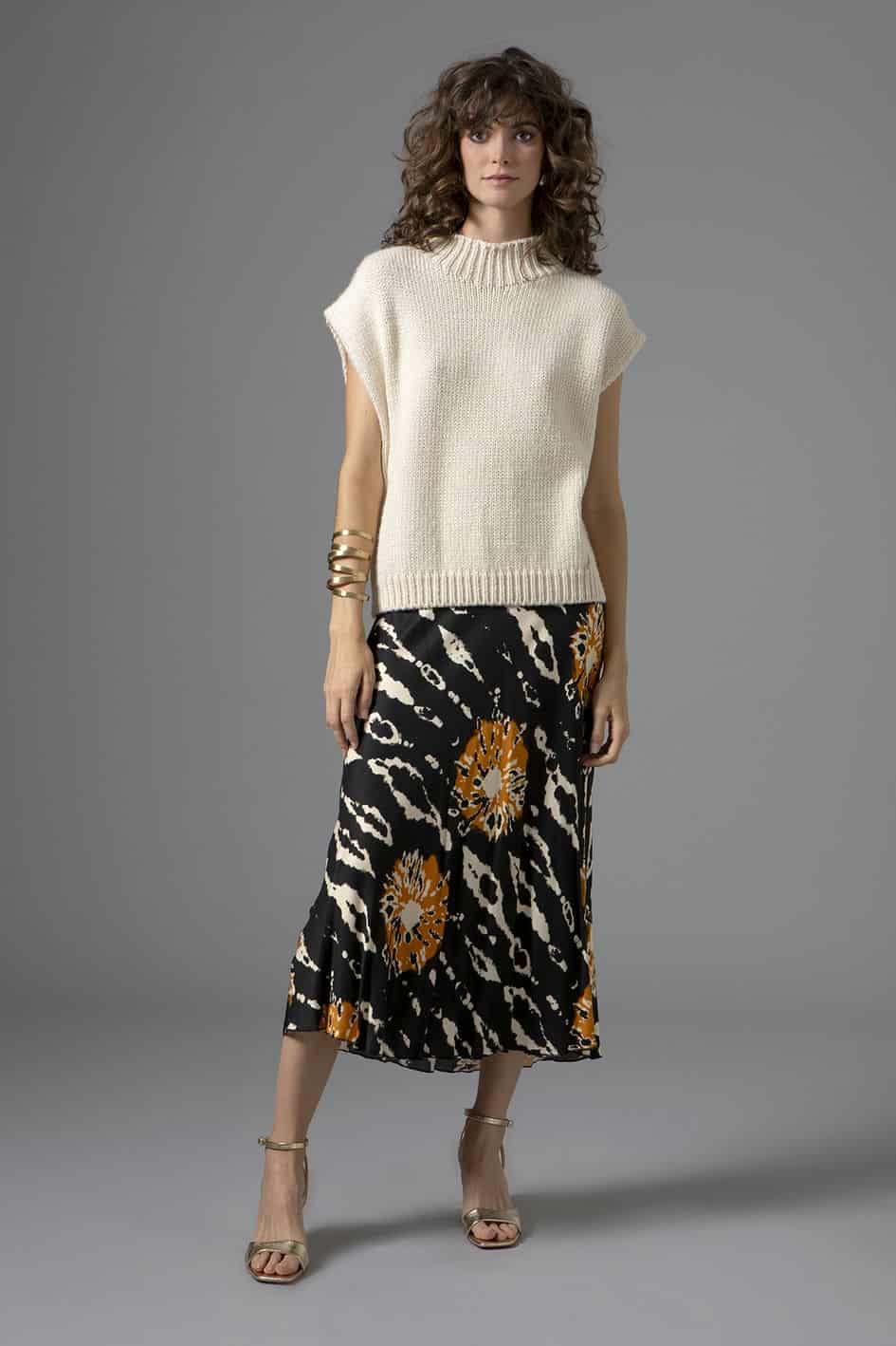 Falda midi satén estampada
