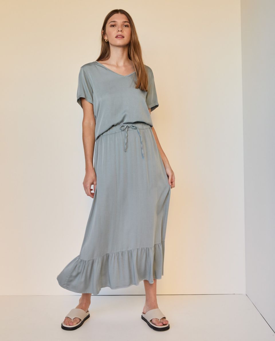 Falda satén bajo volante