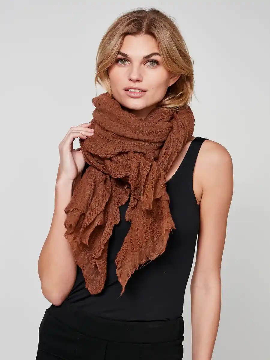 Nuestra popular bufanda múltiple con dobladillos deshilachados y ligeramente elásticos en una calidad de lana súper suave y fabulosa. La bufanda se puede atar de múltiples maneras y es una inversión atemporal que se convertirá en su accesorio más indispensable durante muchas temporadas.