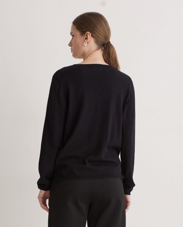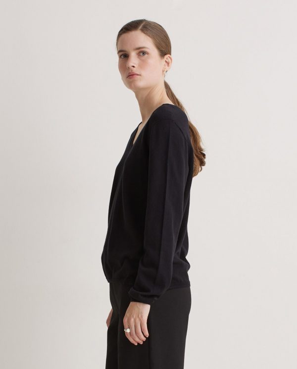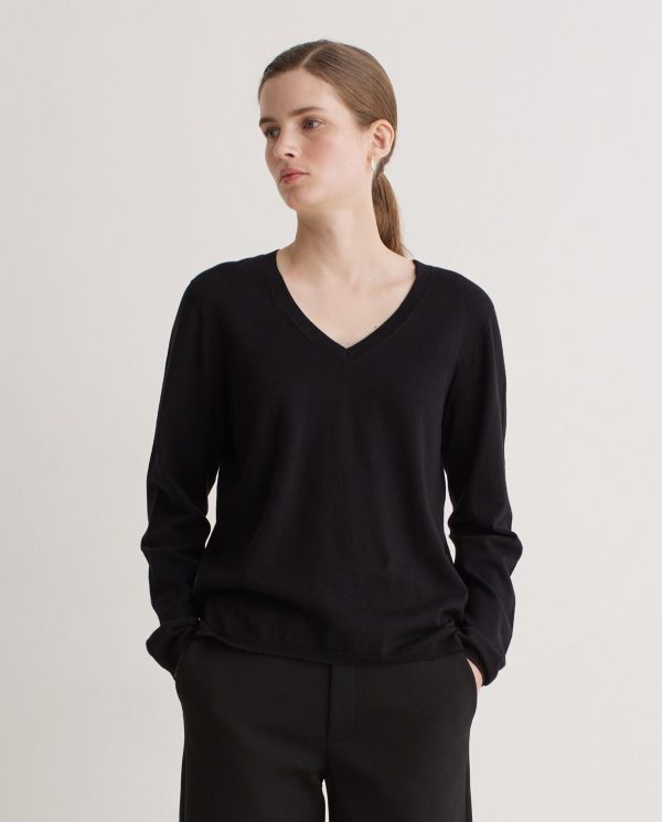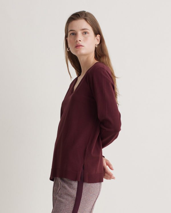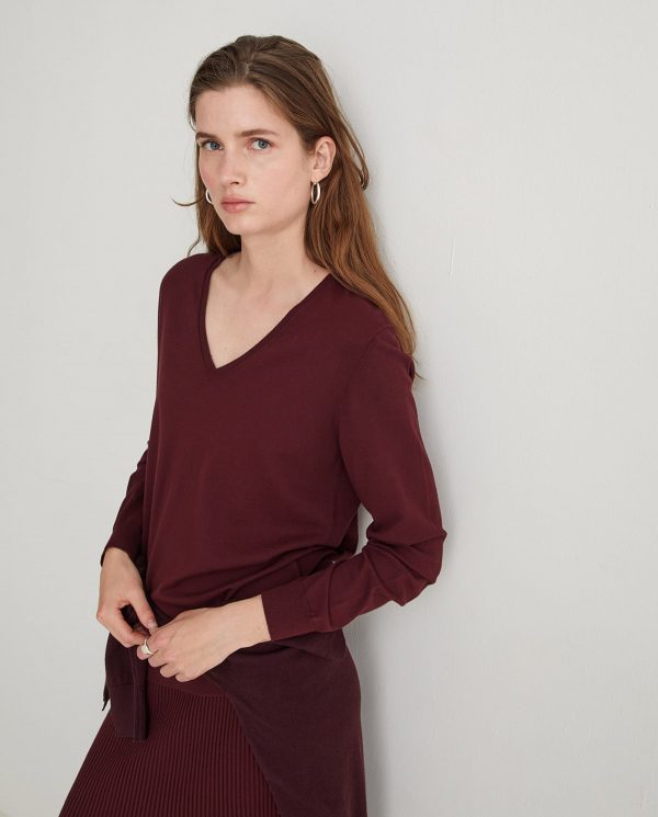 Jersey escote de pico. Tejido mezcla de viscosa. Regular fit. Manga larga. Aberturas laterales en bajos.