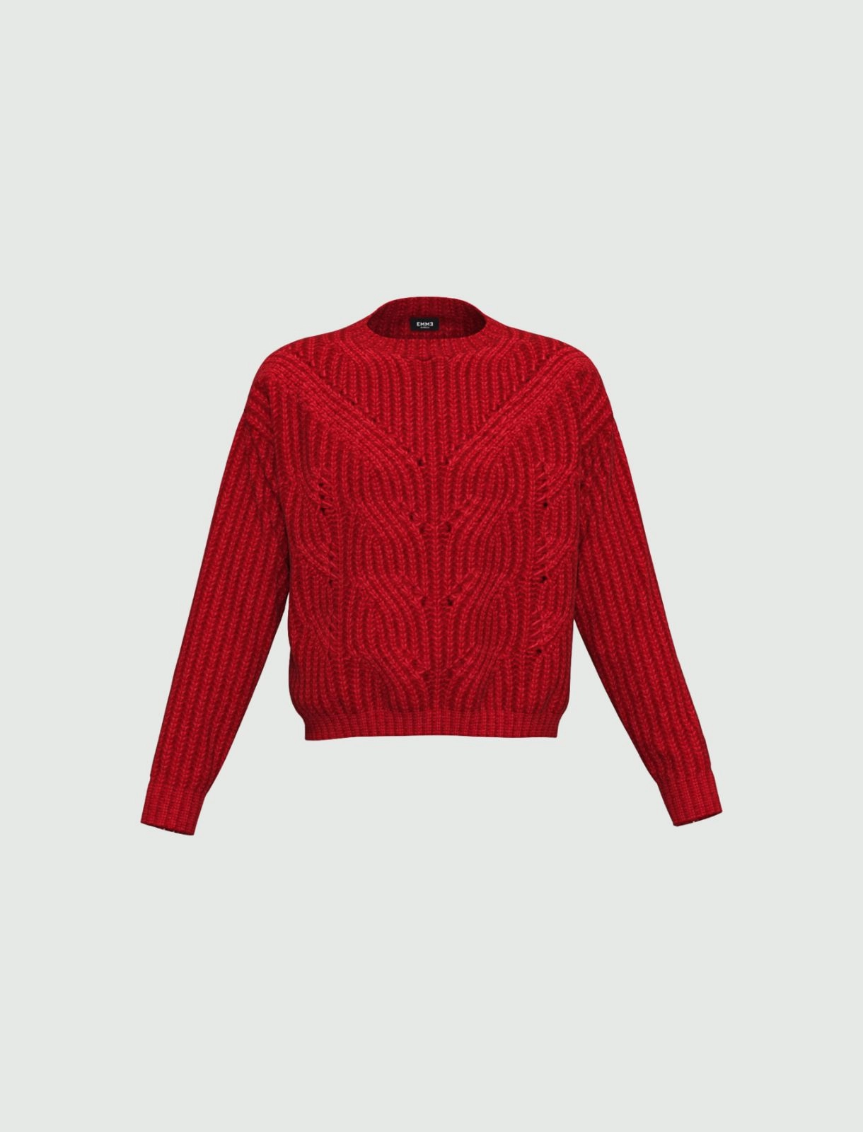 Jersey de mezcla de punto de lana merina, corte recto. Cuello redondo, manga larga con sisa caída y puños.