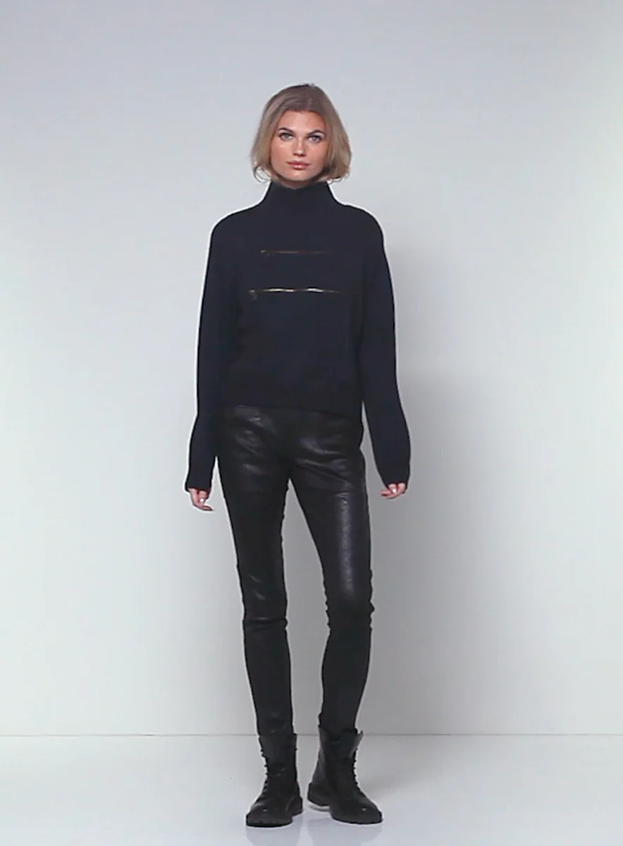 Top de cuello alto en tejido de punto suave y cómodo. La camiseta tiene un elegante cuello alto y un elegante detalle de cremallera en la parte superior delantera. El top queda perfecto con un par de pantalones de color liso, ya que añadirá un elemento elegante y sofisticado a tu conjunto. Si quieres un top que sea cómodo y elegante, este tejido es la elección perfecta para ti.
