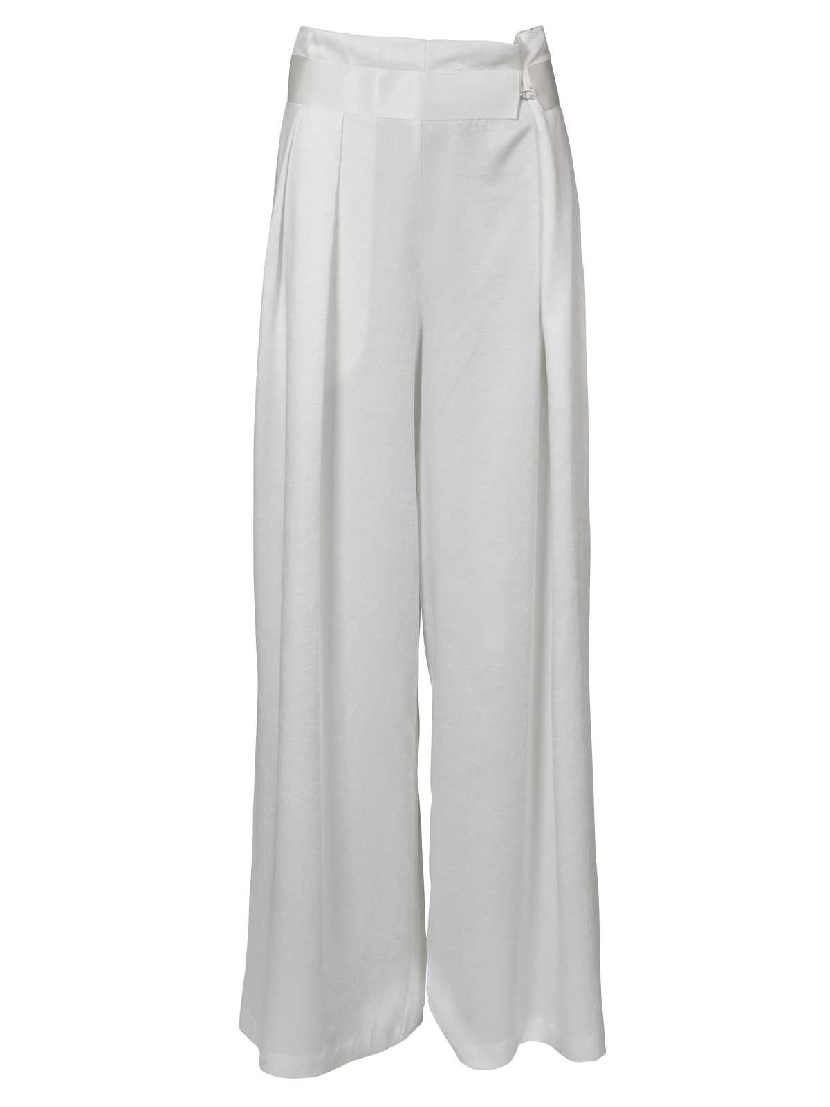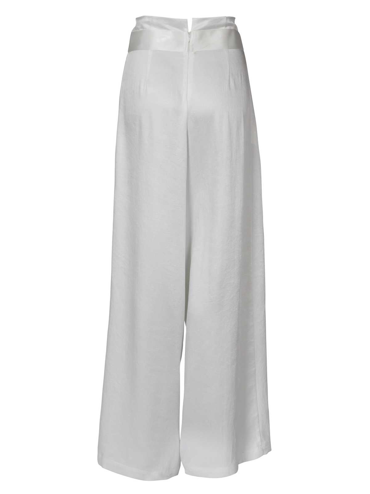 Estos elegantes pantalones están hechos de un elegante satén que les da un aspecto sofisticado. Tiene la cintura alta y entallada con un corte holgado que se abrocha con cremallera en la parte superior trasera. Los pantalones tienen piernas anchas y rectas con pliegues en la parte delantera, lo que les da una silueta atemporal y femenina.