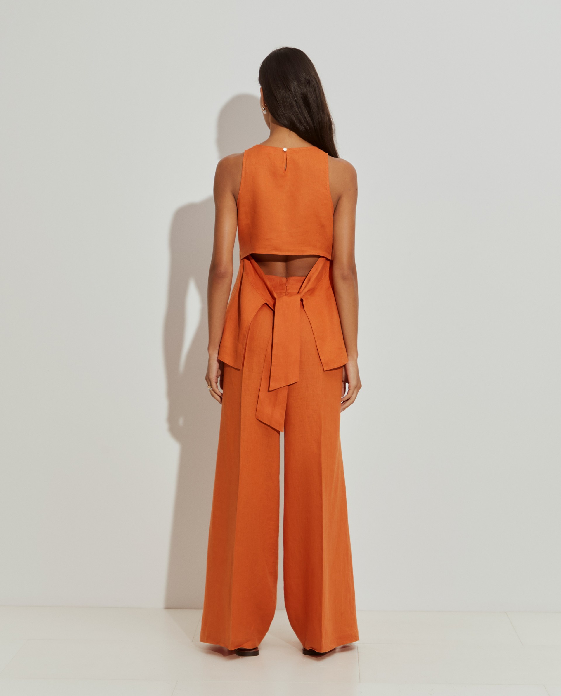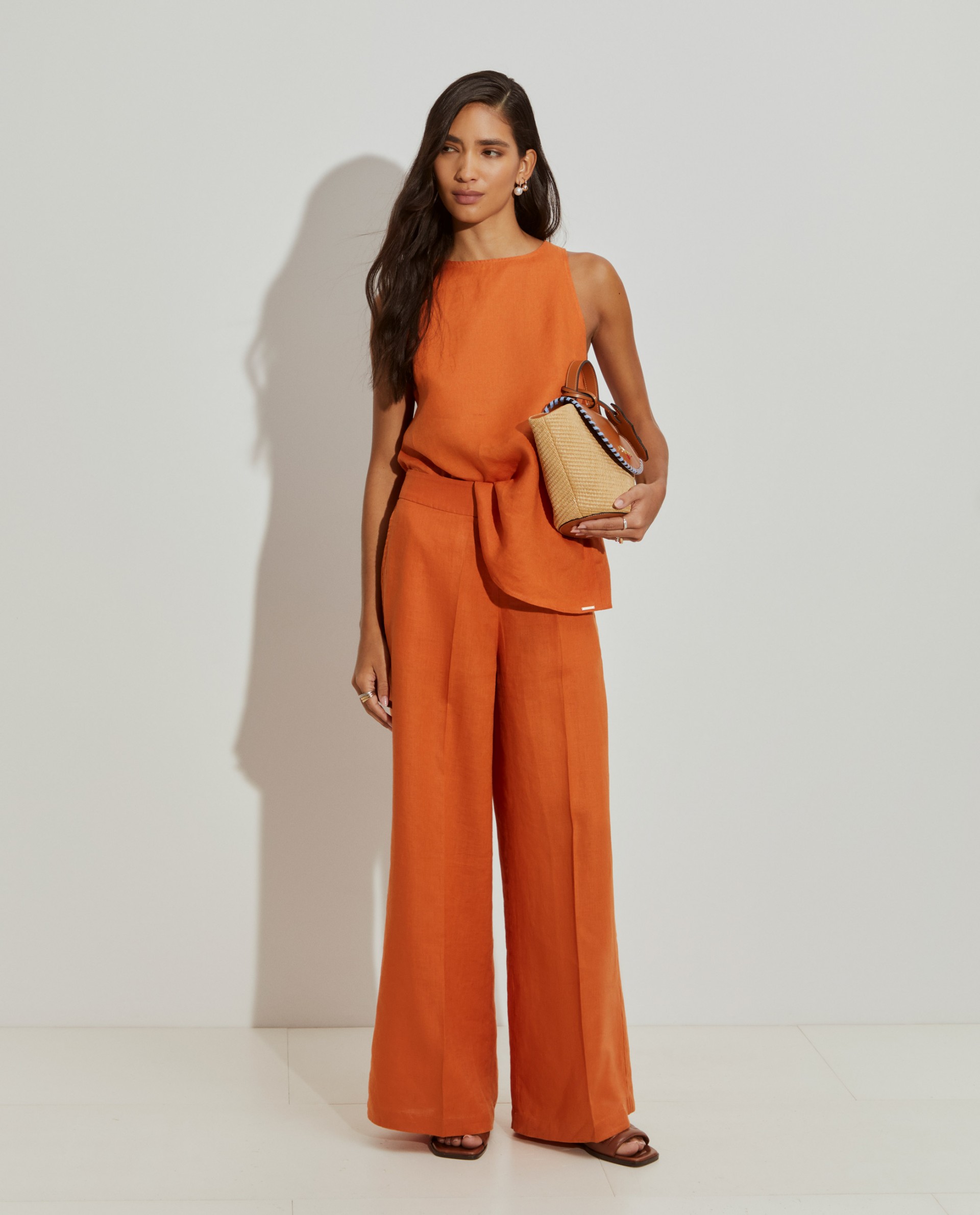 Pantalón ancho, cómodo y con estilo. Modelo arrugado, sin pliegues. Están confeccionados íntegramente en lino, lo que aporta a la pieza mayor ligereza, transpirabilidad y durabilidad, además de un aspecto rústico muy apreciado en verano. Para un total look perfecto, mira también el top y la camisa larga de la misma colección. Con cierre de cremallera invisible en la espalda.