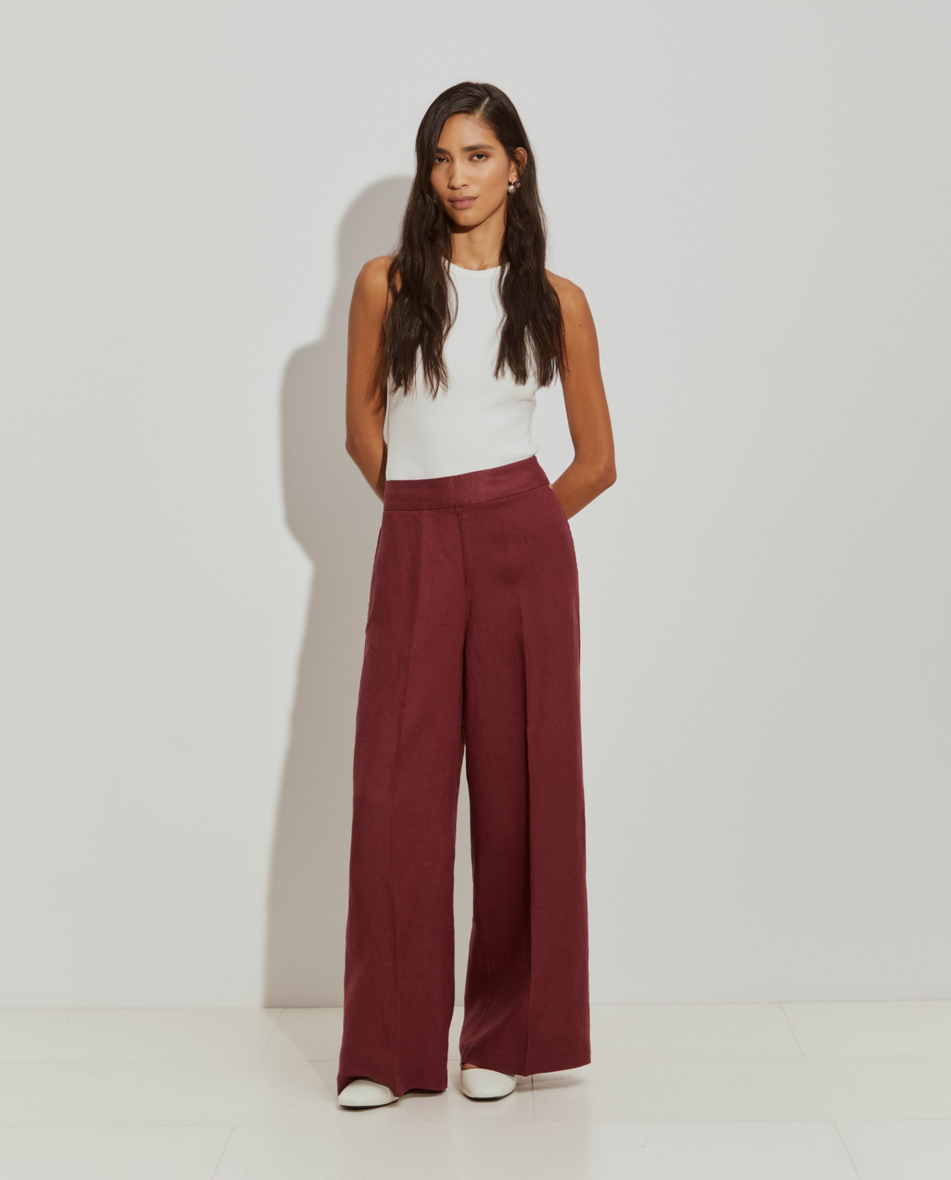 Pantalón ancho, cómodo y con estilo. Modelo arrugado, sin pliegues. Están confeccionados íntegramente en lino, lo que aporta a la pieza mayor ligereza, transpirabilidad y durabilidad, además de un aspecto rústico muy apreciado en verano. Para un total look perfecto, echa un vistazo también a la camisa larga de la misma colección. Con cierre de cremallera invisible en la espalda.