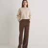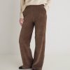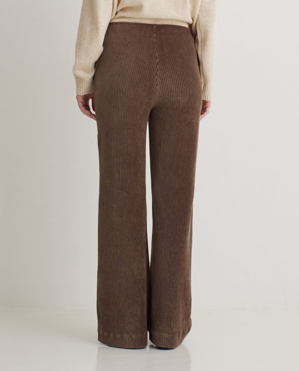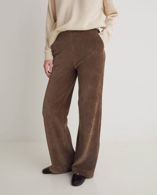 Pantalón de pana de punto. Tejido mezcla de algodón. Corte ancho. Sin cierre. Goma en la cintura. Dos bolsillos laterales.