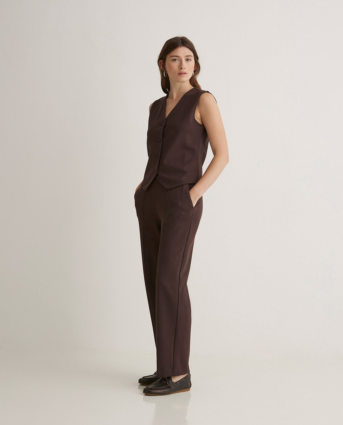Pantalón barrel punto marrón YERSE