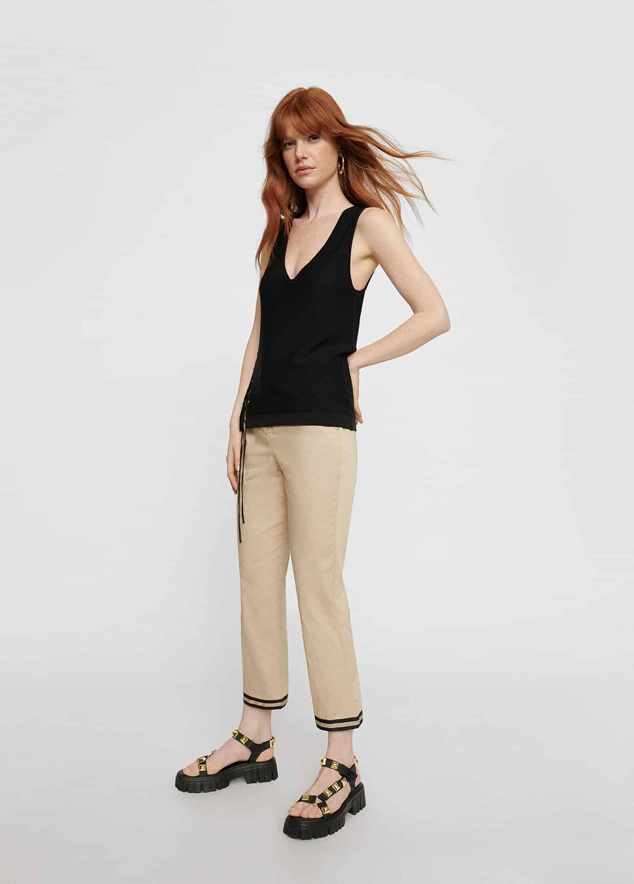 Pantalón de largo tobillero con detalle de rayas en bajos.