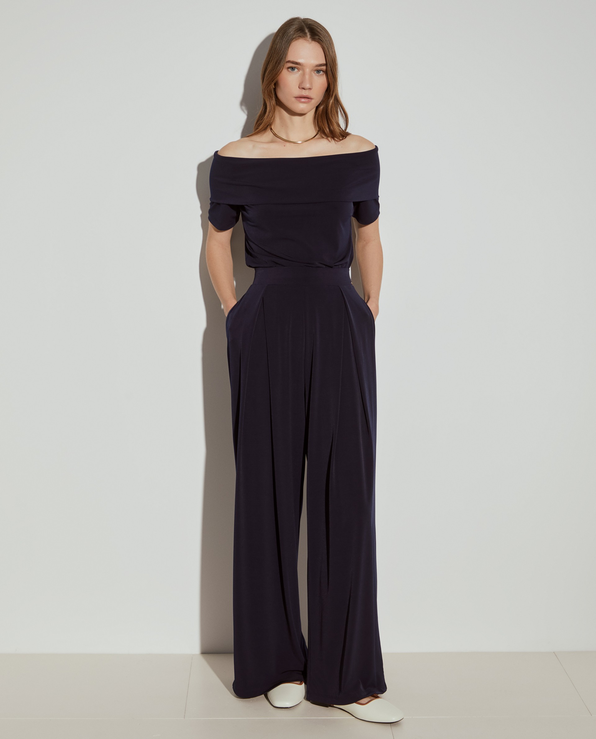 Pantalón ancho, confeccionado en malla fluida, ligero y cómodo. Con cintura elástica y pliegues en la parte superior. Para un total look, mira también el top de la misma colección.
