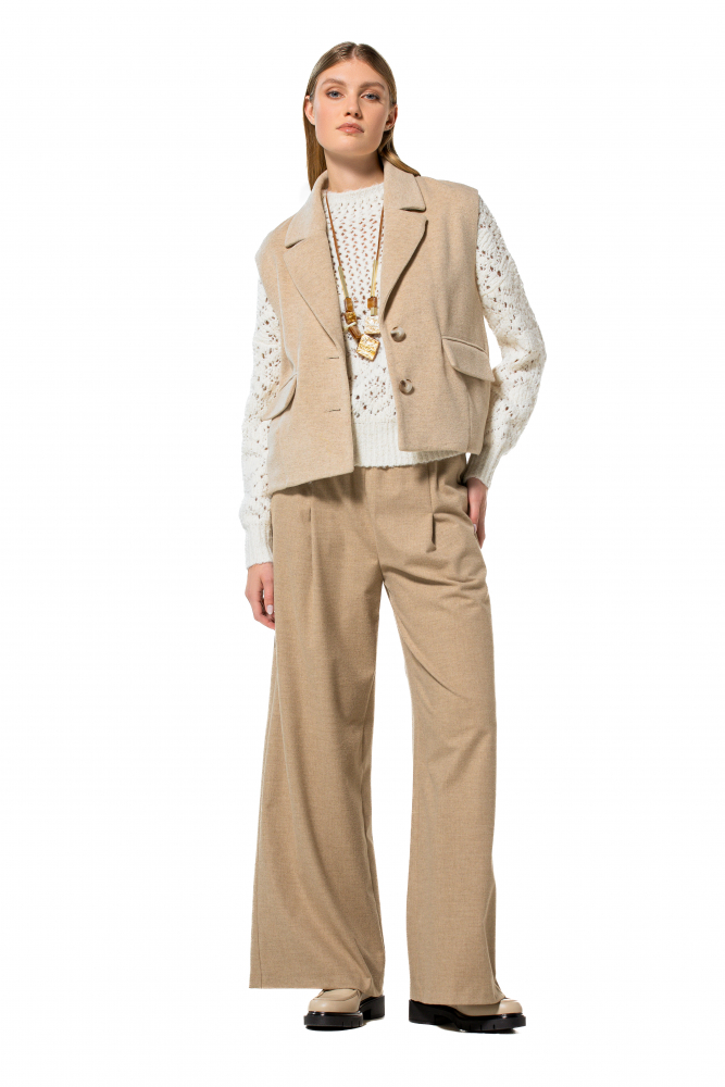 Pantalones anchos y holgados de mezcla de lana, cintura elástica