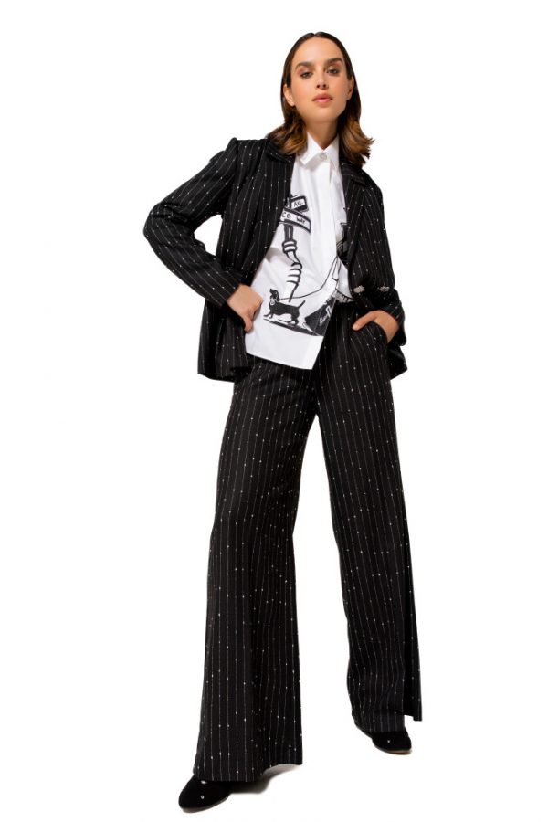 Pantalones palazzo de mezcla de lana, cintura elástica