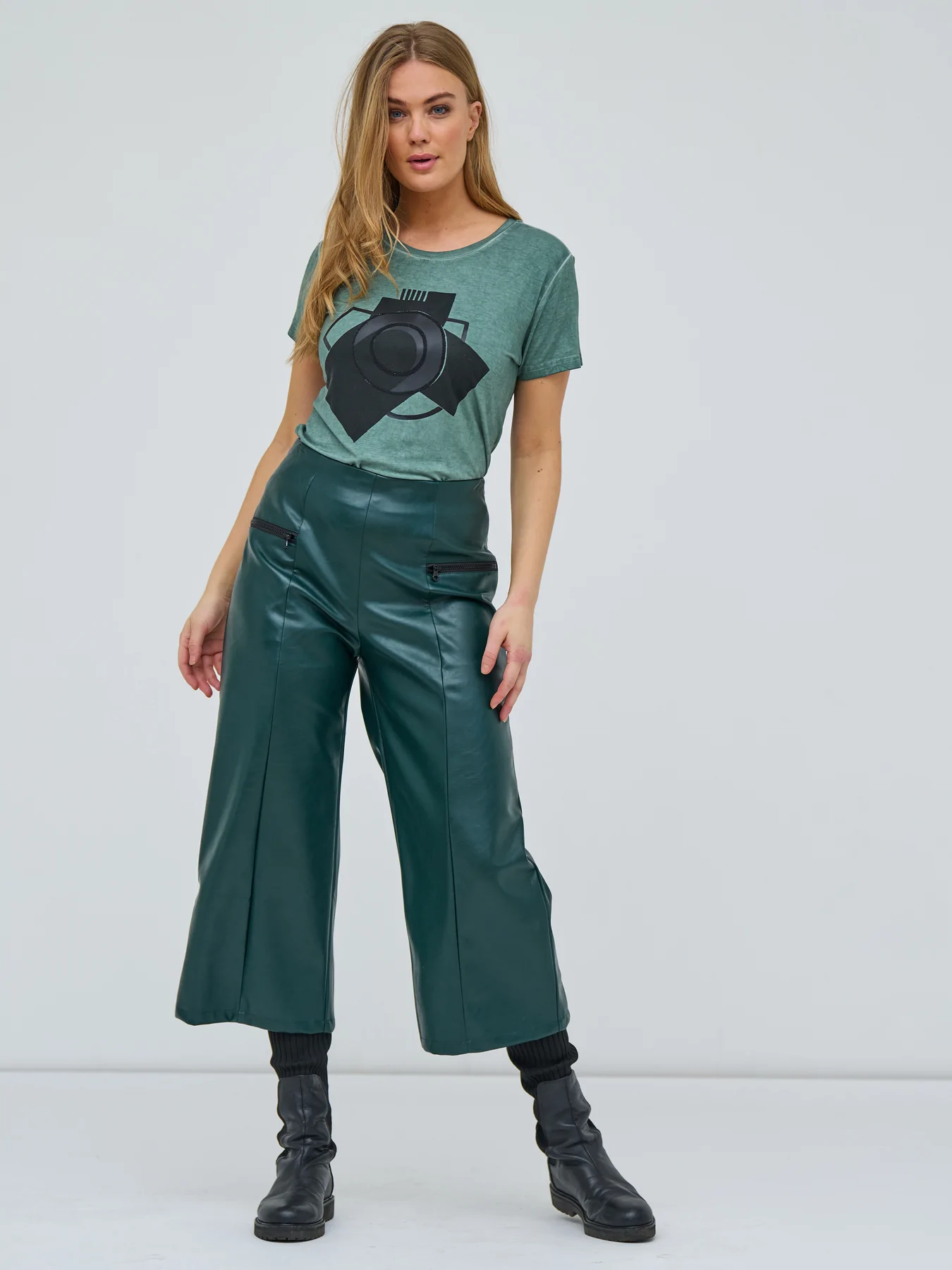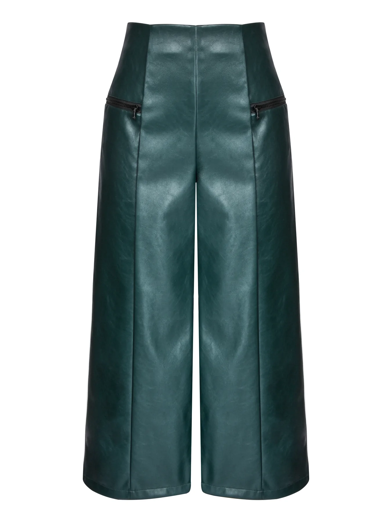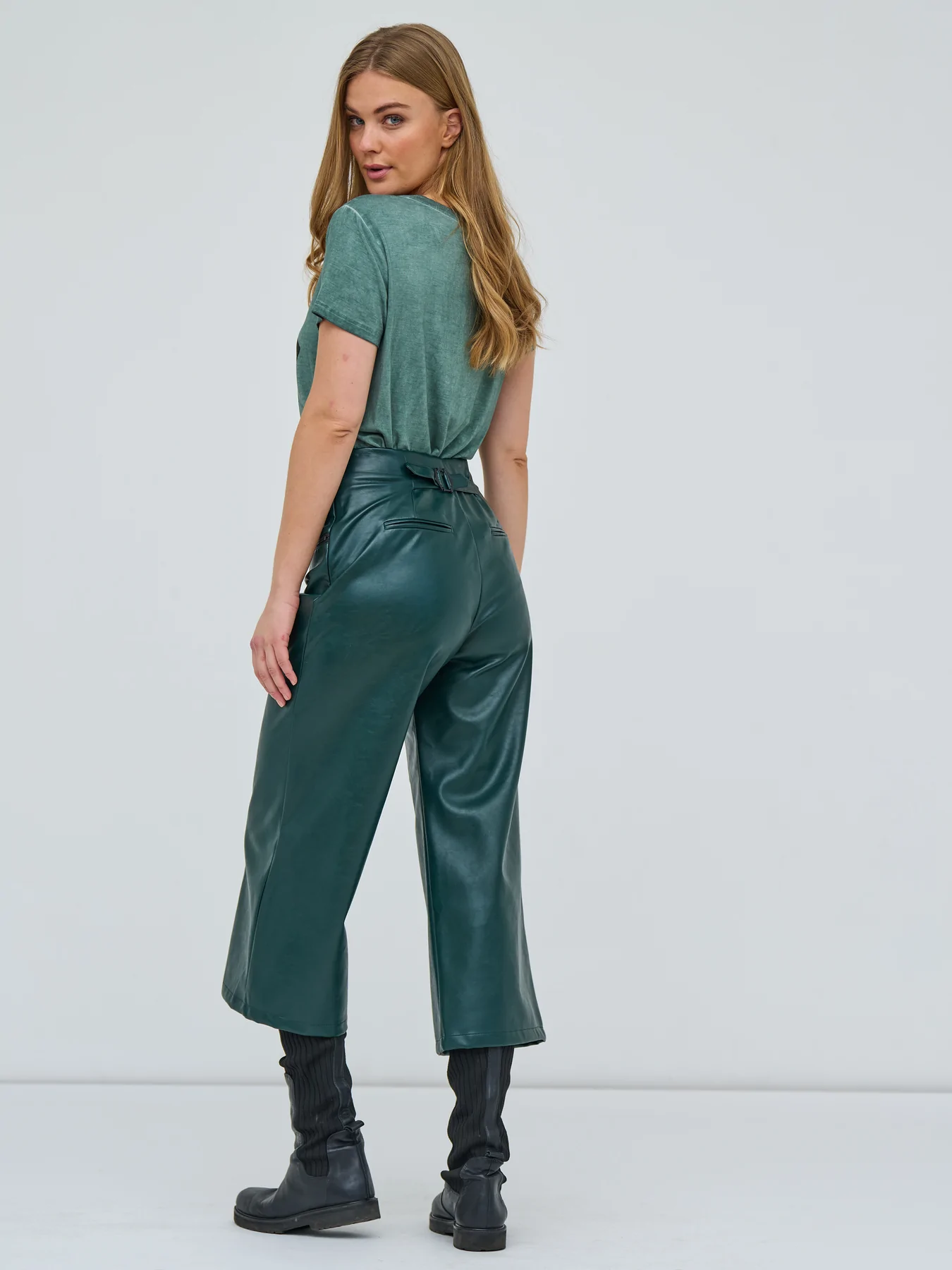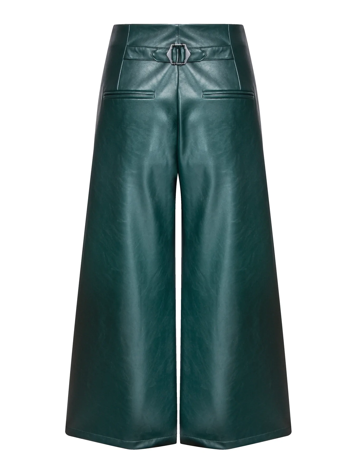 Diseñado para sentarse alto en la cintura con piernas cortas y anchas en un cuero sintético favorecedor con detalles como cremalleras y una hebilla de cinturón en la parte superior de la espalda. Estos pantalones se pueden usar para crear un atuendo único: combínelos con todo, desde una camiseta llamativa hasta una blusa estampada.