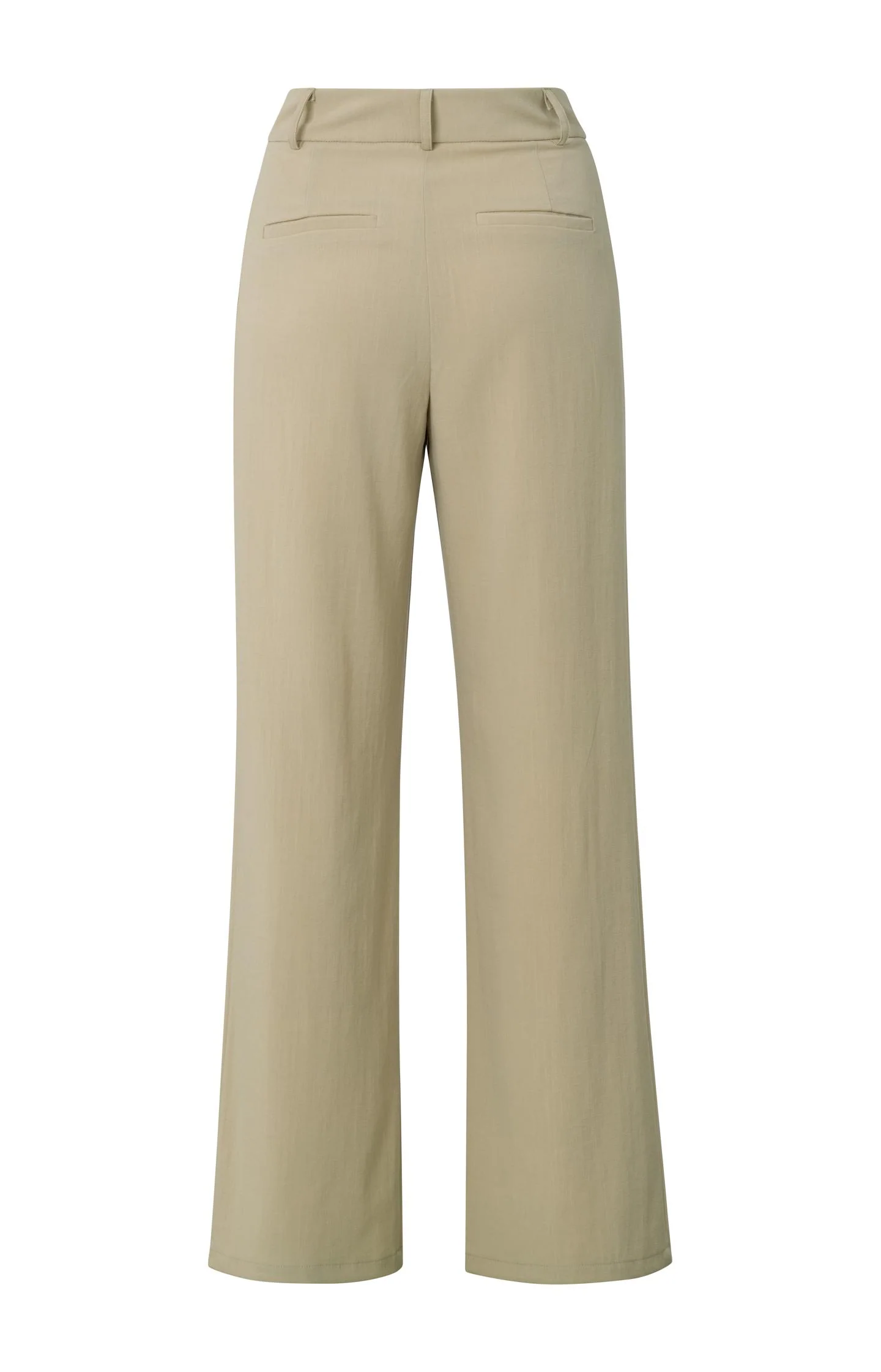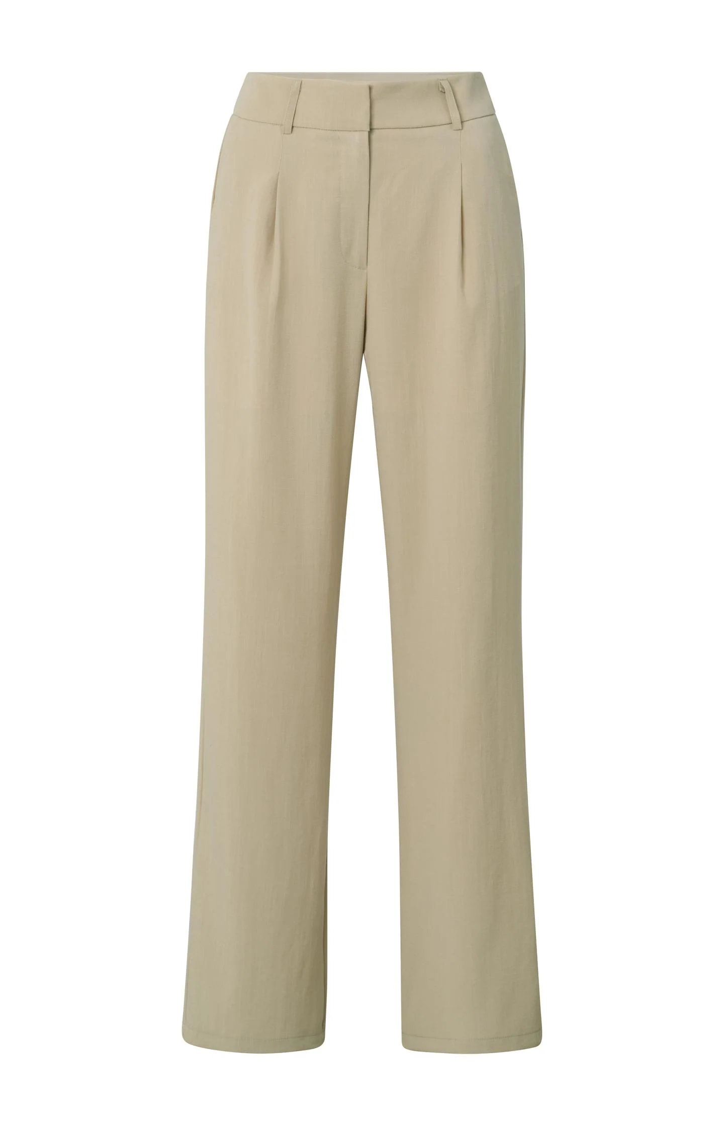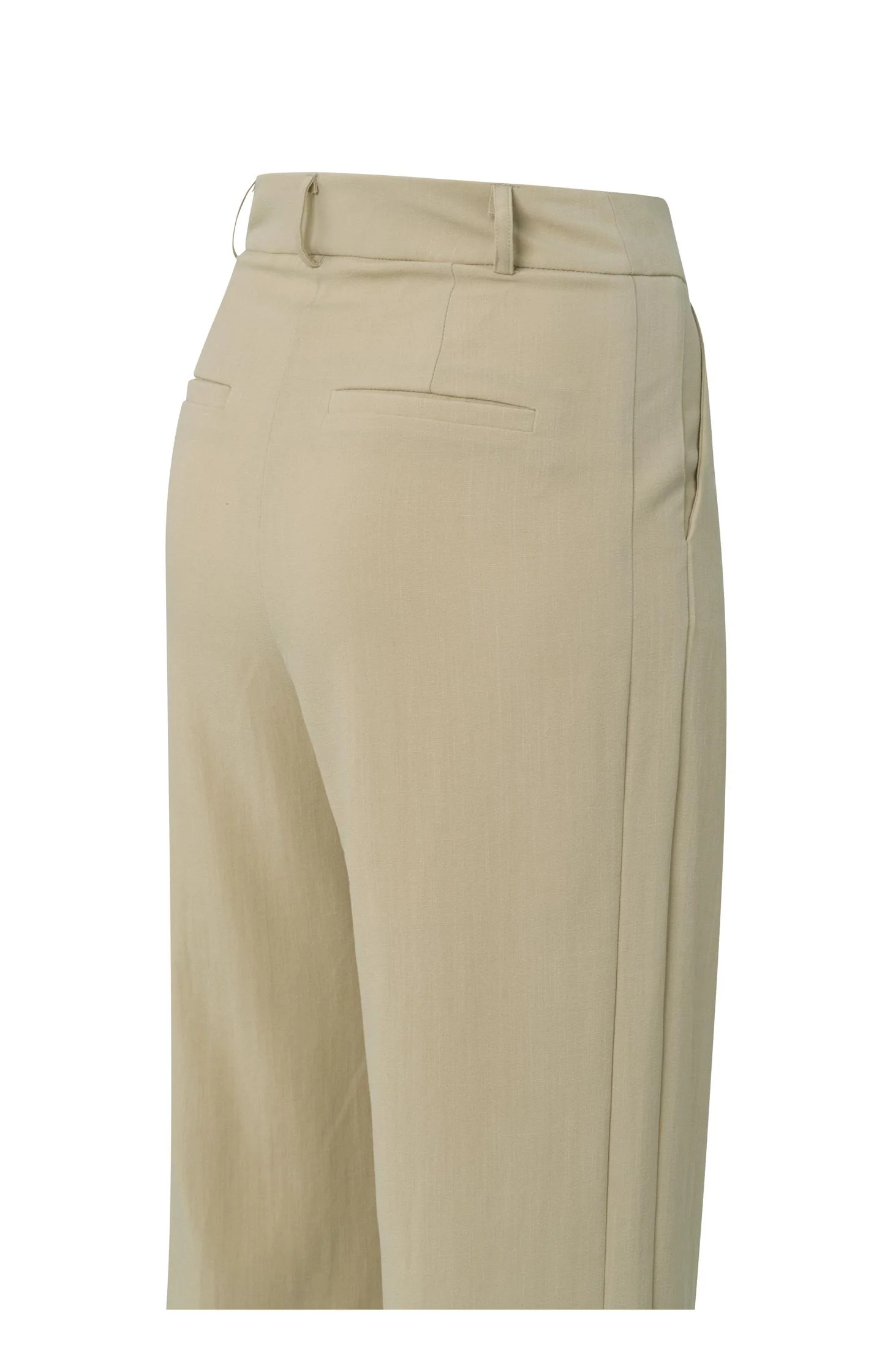 Eleva tu guardarropa con estos sofisticados pantalones con detalle de pliegues. Confeccionados con tejido de alta calidad, estos pantalones de pernera ancha ofrecen estilo y comodidad. El modelo mide 171 cm y lleva una talla 36.