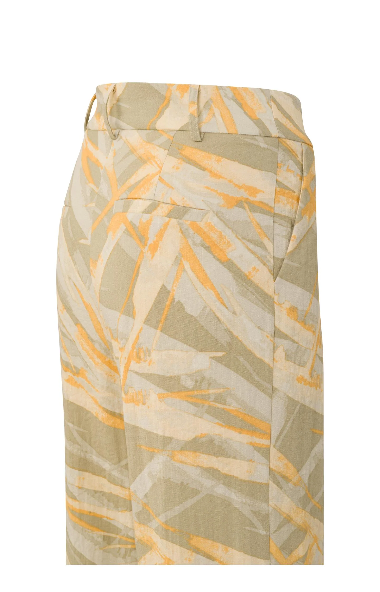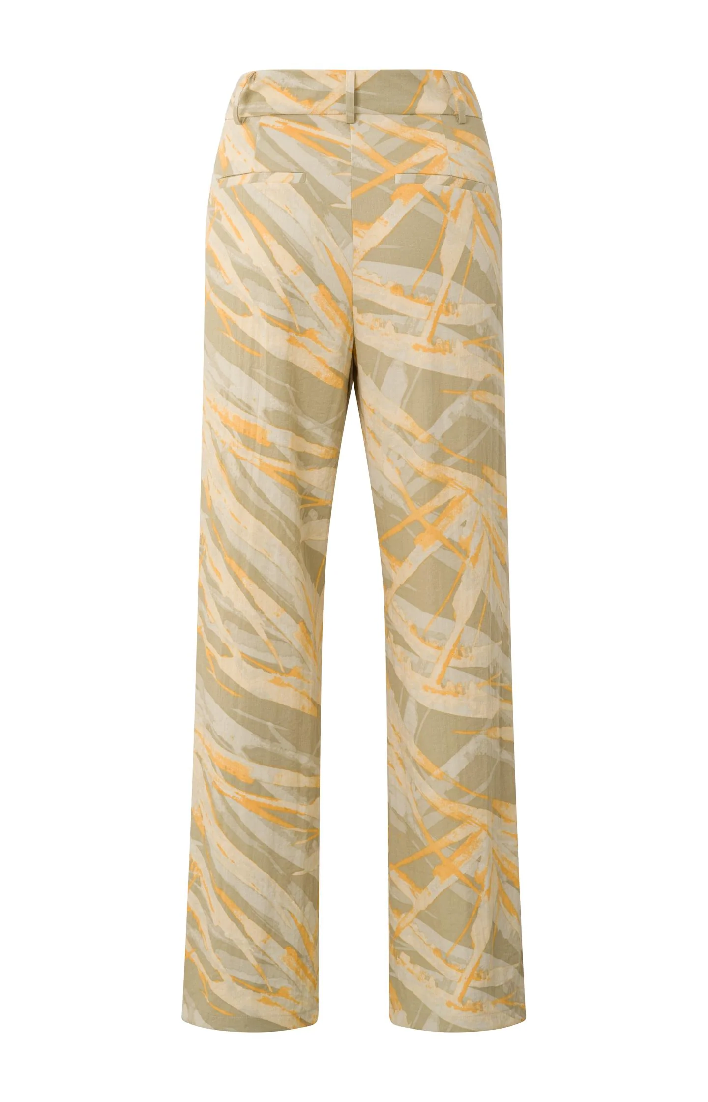 Pantalón de cintura alta con un vibrante estampado naranja y verde, perfecto para añadir un toque de color a tu guardarropa de verano. Confeccionado con un diseño de pierna ancha que garantiza una silueta elegante. El modelo mide 173 cm y lleva una talla 36.