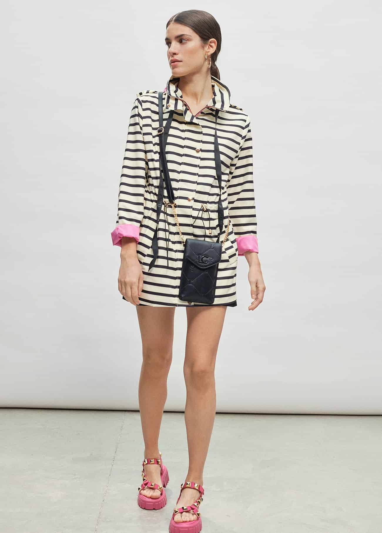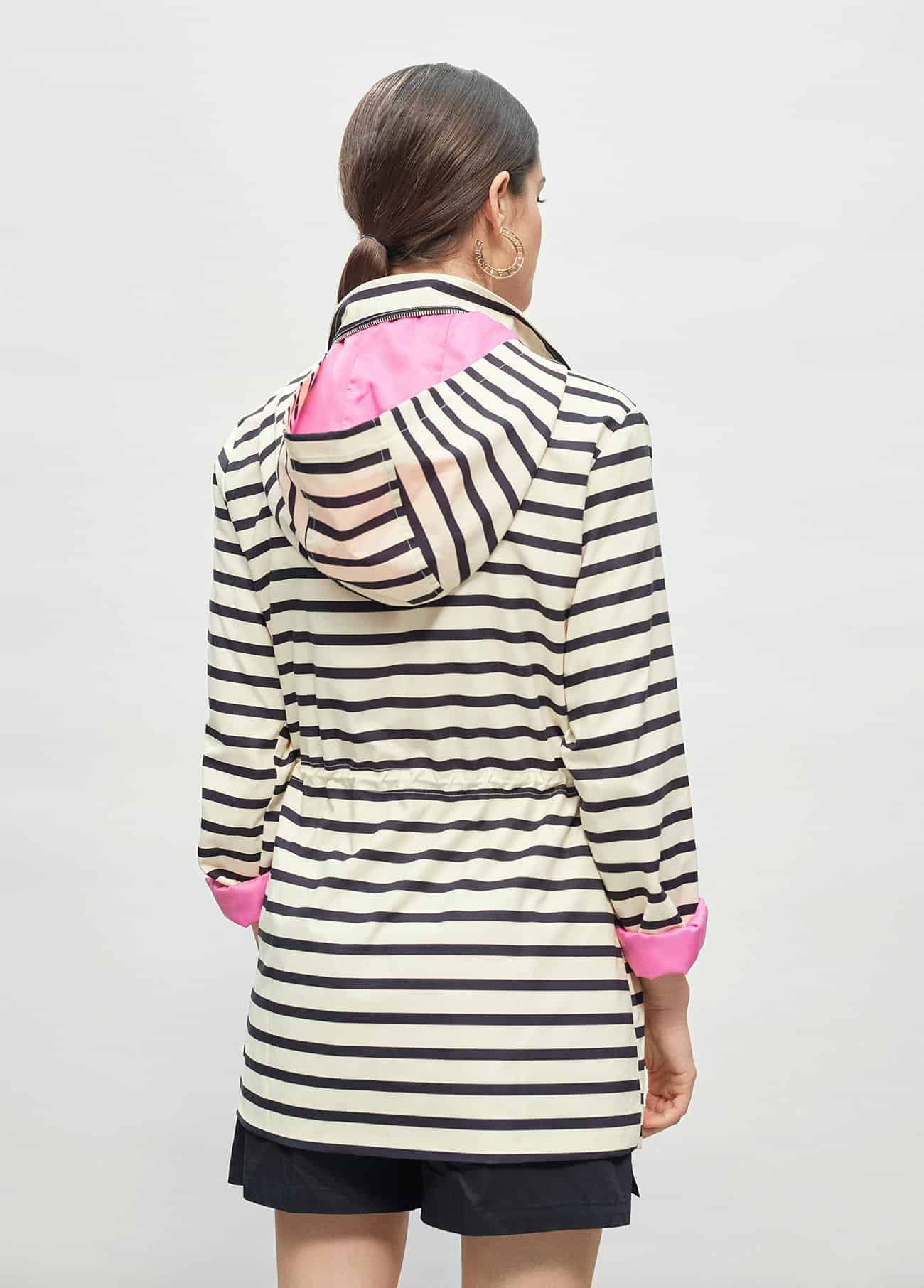 Parka de rayas con forro rosa