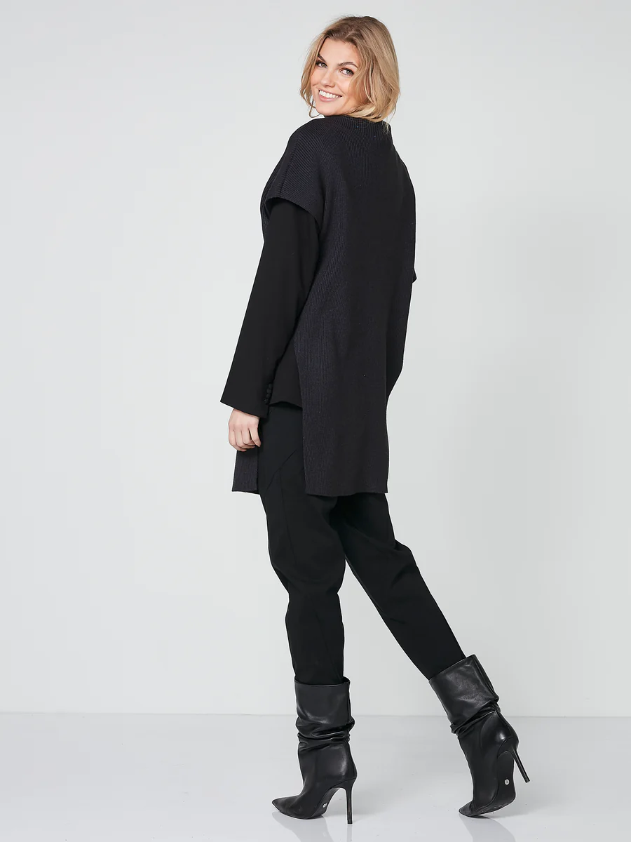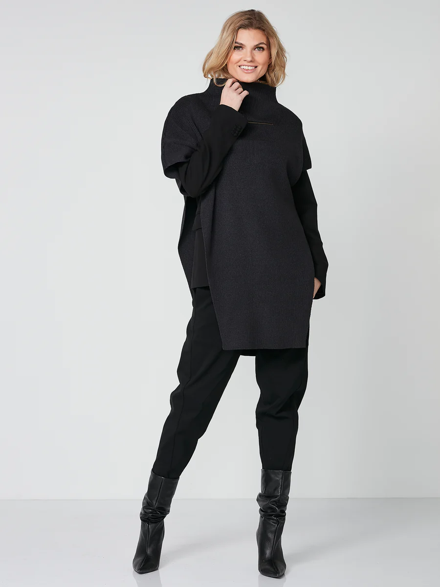 Poncho súper fresco confeccionado en un material de punto suave y cómodo. El poncho tiene un corte largo, aberturas laterales altas, detalle de cremallera y un diseño asimétrico que le da un aspecto único y moderno. Puedes combinar fácilmente este poncho con tu conjunto, ya sea que vayas a trabajar o salgas por la noche. Es perfecto tanto por fuera como por dentro cuando quieres una capa extra de calidez y estilo.